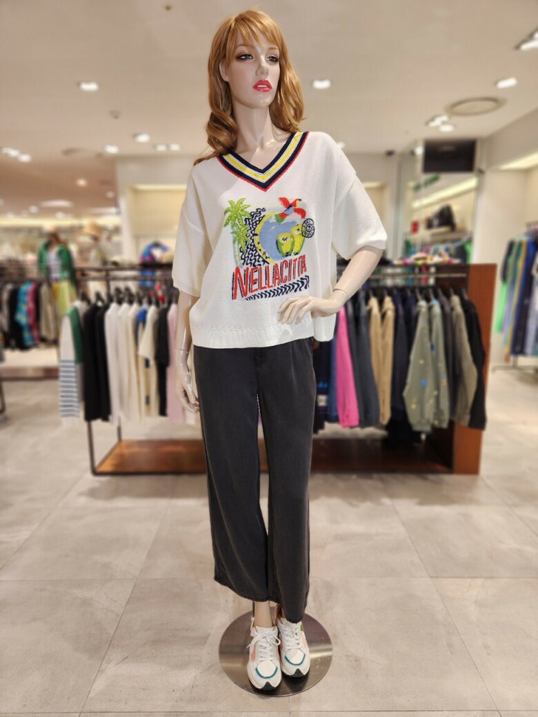 7.니트류는 자가드 프린트 기법으로 제작되어 앞부분에 예쁜 프린트처리가 되어 있습니다