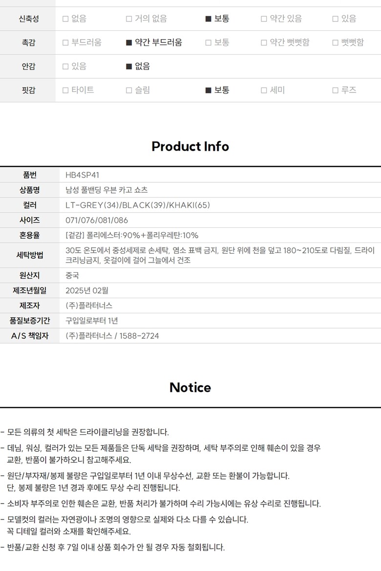 1. 제품 소재 (섬유의 조성 또는 혼용률을 백분율로 표시, 기능성인 경우 성적서 또는 허가서) | [겉감] 폴리에스터:90%+폴리우레탄:10% |