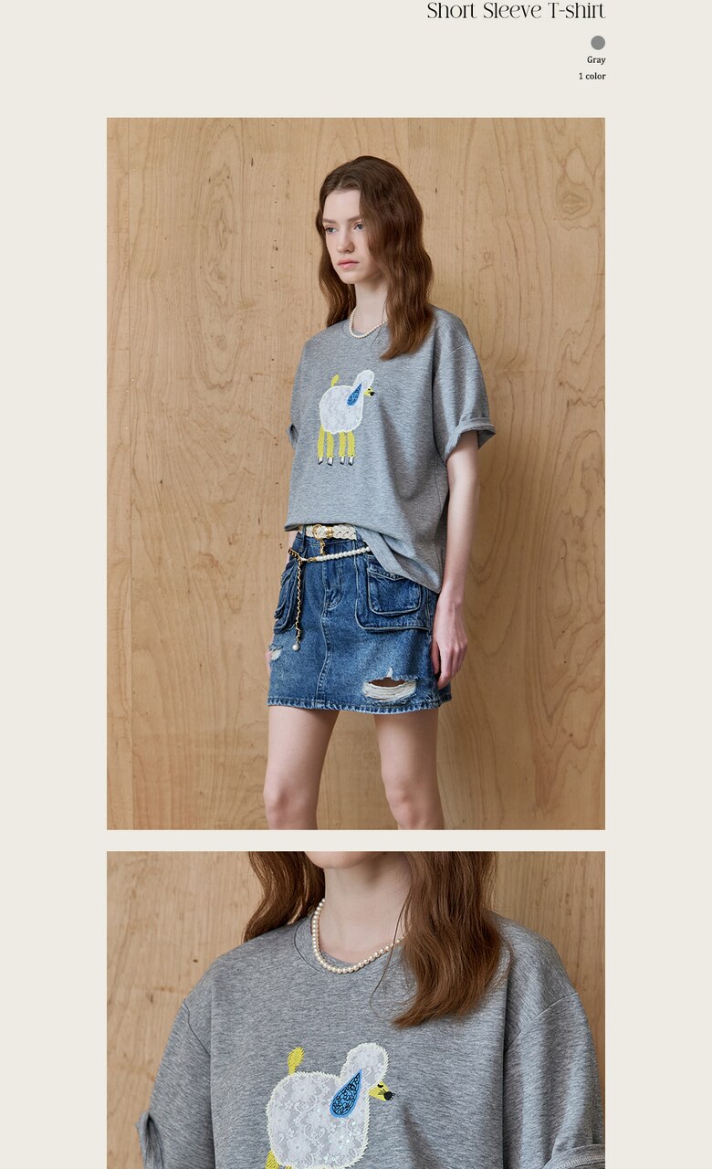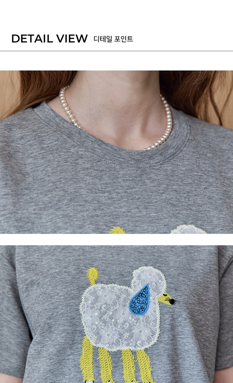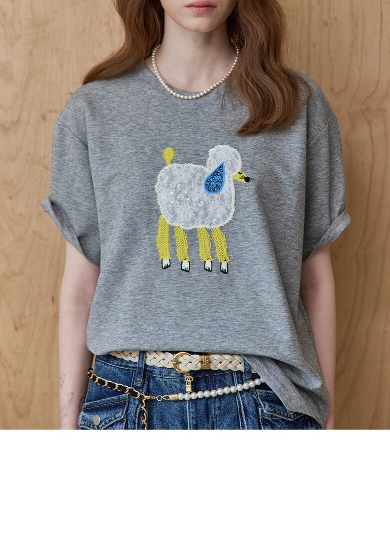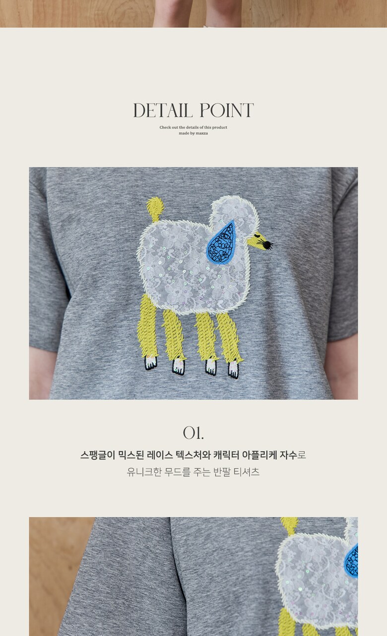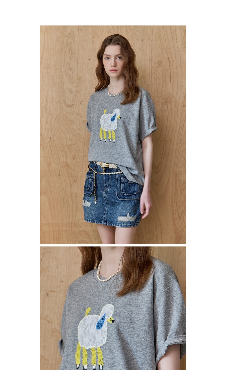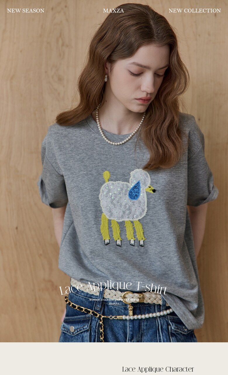 레이스 아플리케 캐릭터 반팔 티셔츠