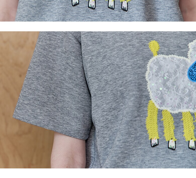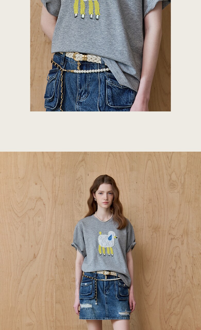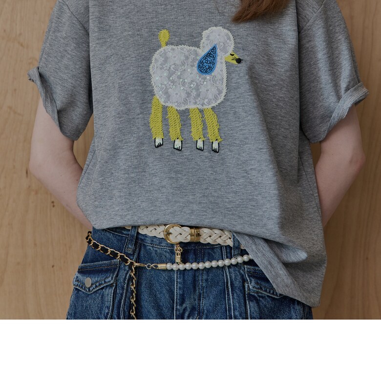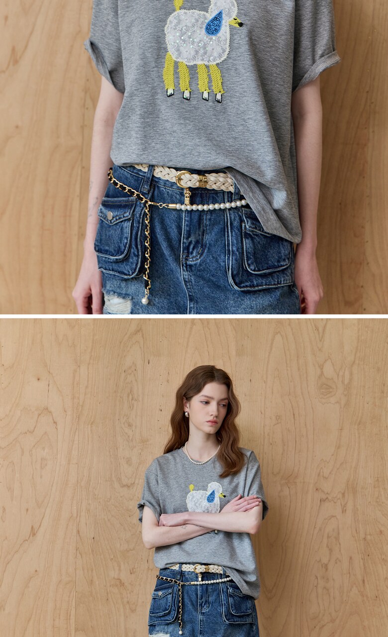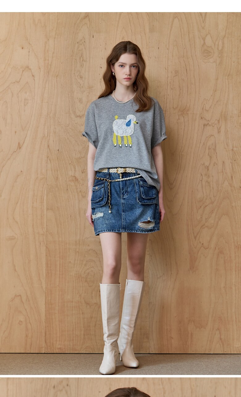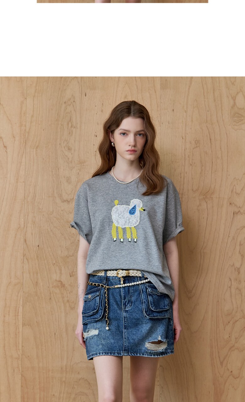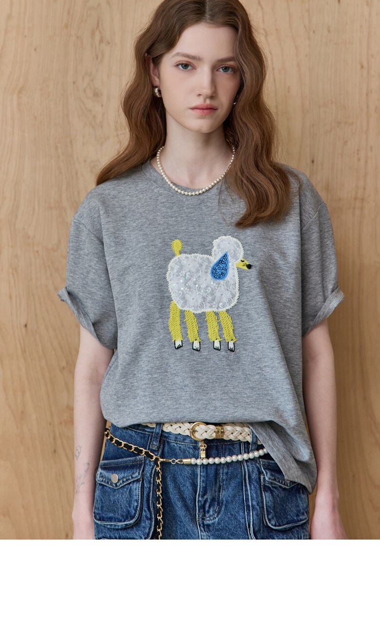 레이스 아플리케 캐릭터 반팔 티셔츠