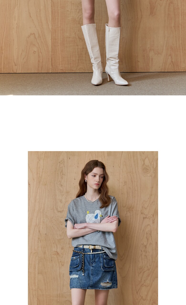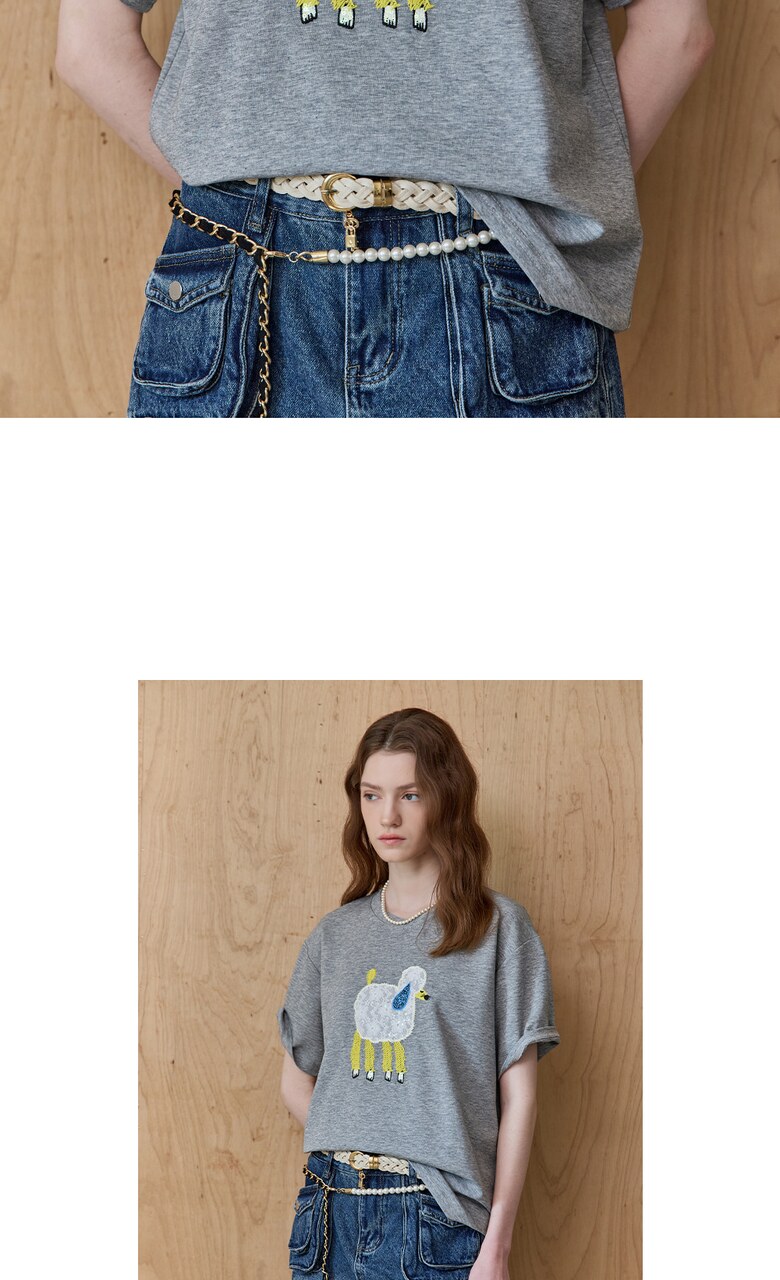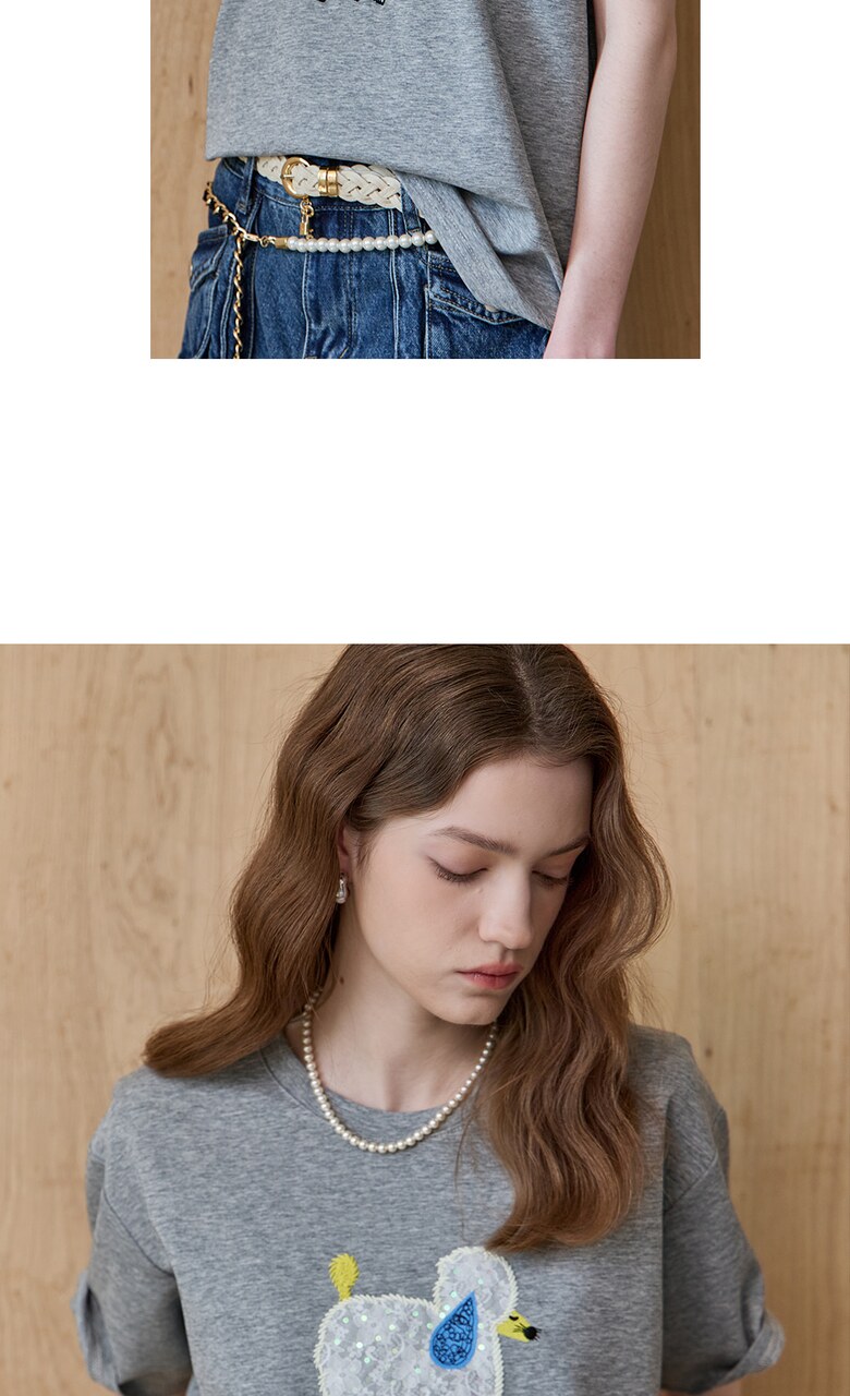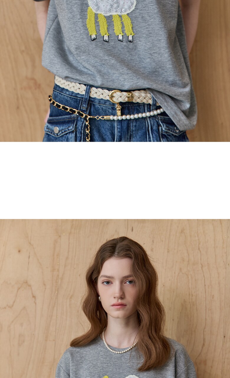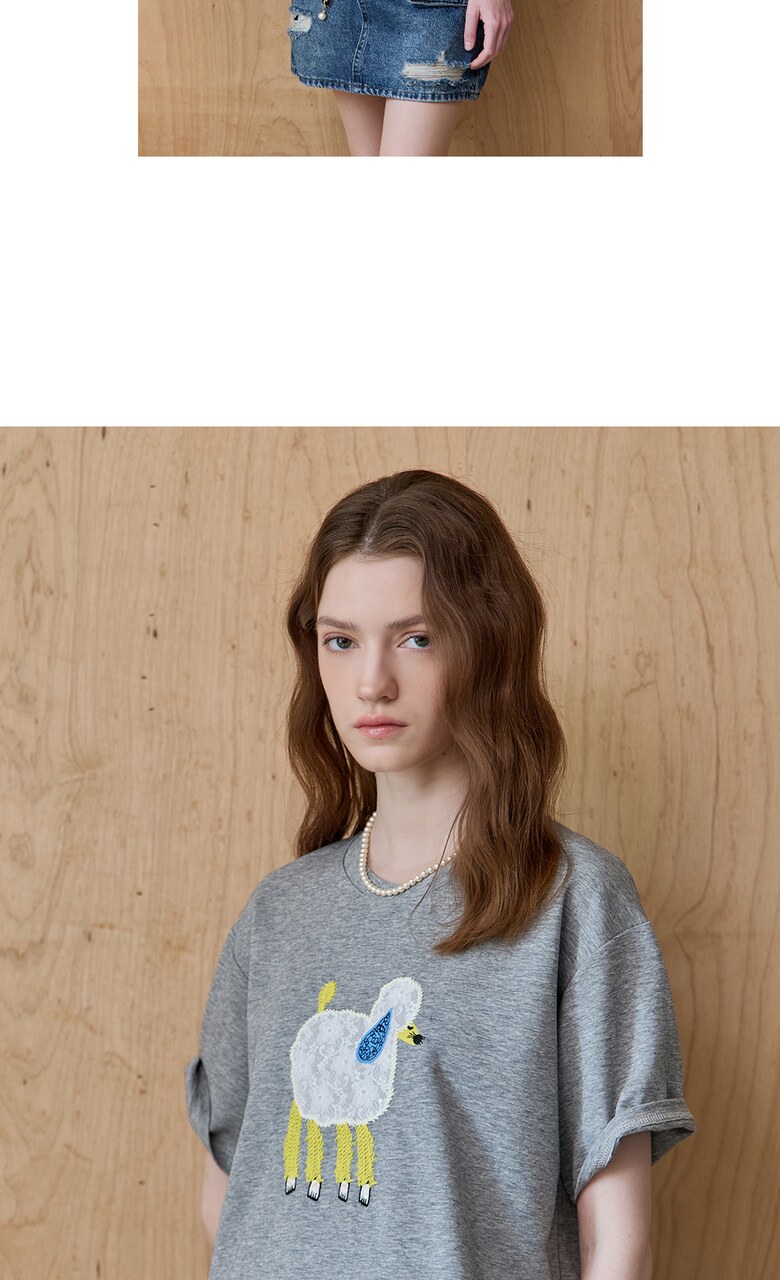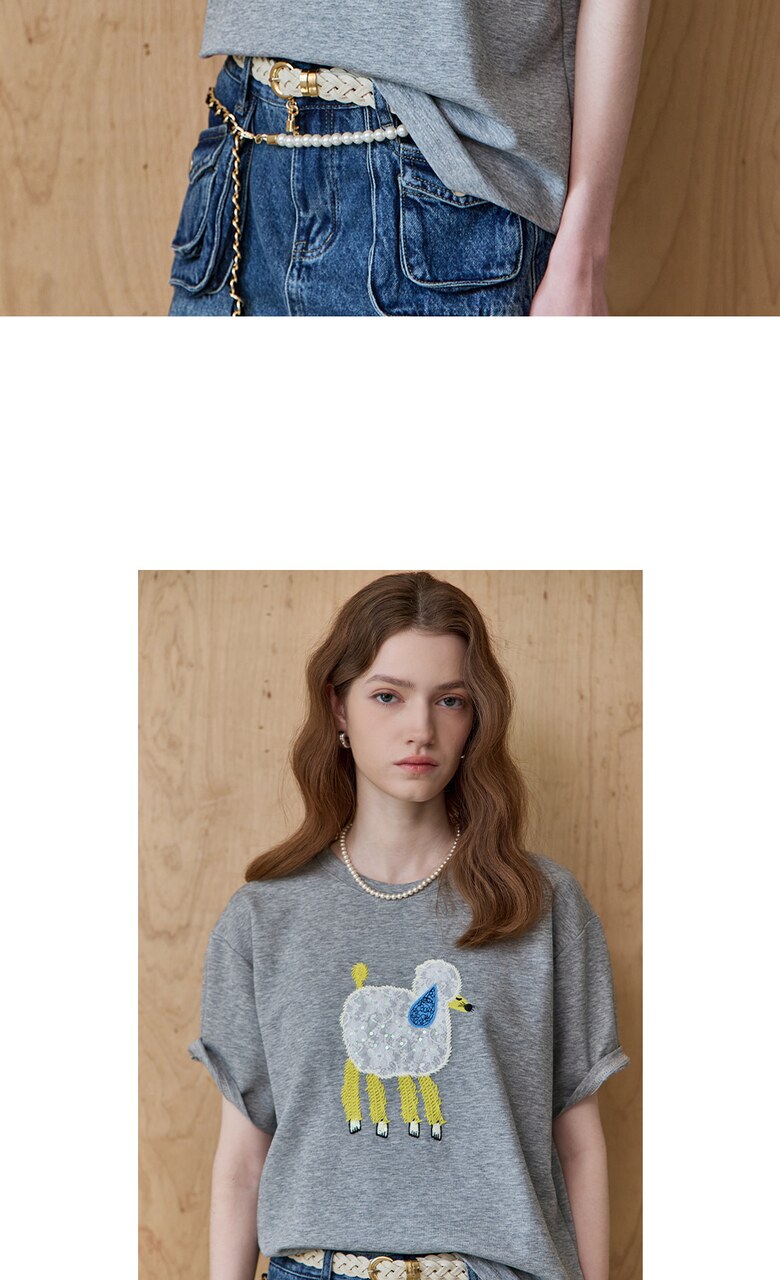레이스 아플리케 캐릭터 반팔 티셔츠
