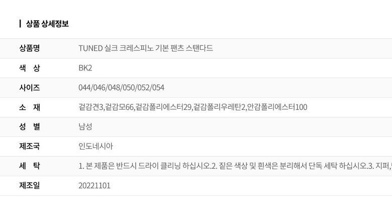 | 6. 세탁방법 및 취급시 주의사항 | 상세설명 참조 |
