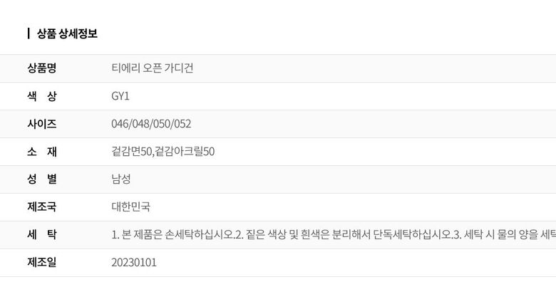 | 6. 세탁방법 및 취급시 주의사항 | 상세설명 참조 |