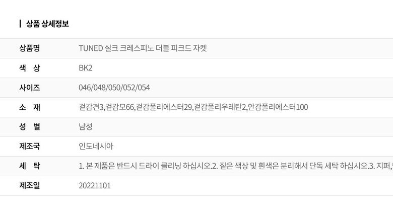 [T.I FORMEN] TUNED 실크 크레스피노 더블 피크드 자켓_M232MTJ705M