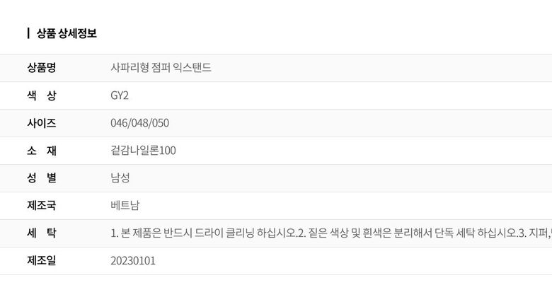 | 6. 세탁방법 및 취급시 주의사항 | 상세설명 참조 |