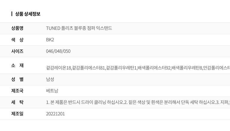 | 6. 세탁방법 및 취급시 주의사항 | 상세설명 참조 |