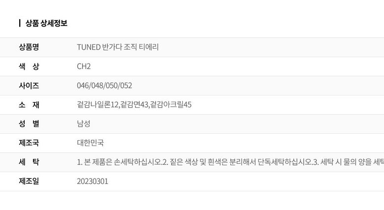 | 6. 세탁방법 및 취급시 주의사항 | 상세설명 참조 |
