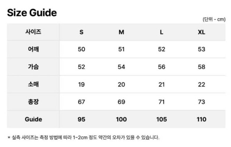 사이즈 : 95(S),100(M),105(L),110(XL)