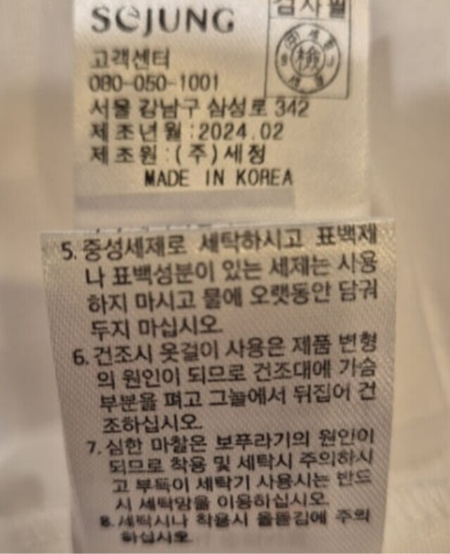 | 6. 세탁방법 및 취급시 주의사항 | 상품상세참조 |