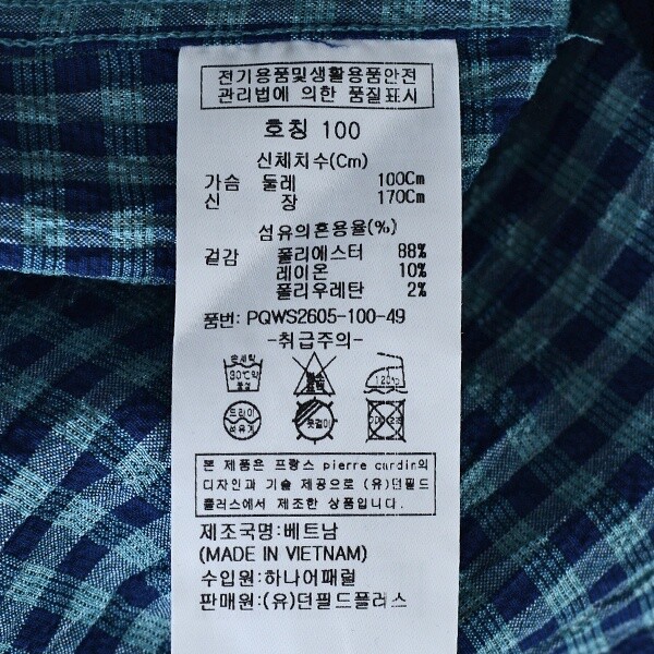 제품소재 : 폴리에스터 88%, 레이온 10%, 폴리우레탄 2%