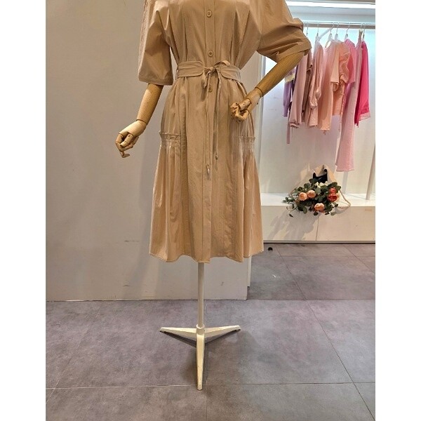 치수 : FREE 어깨너비 48cm가슴단면 50cm허리단면 53cm소매기장 27cm총 기장 107cm