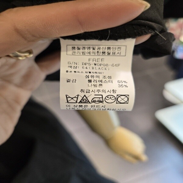 | 1. 제품 소재 (섬유의 조성 또는 혼용률을 백분율로 표시, 기능성인 경우 성적서 또는 허가서) | 폴리에스터65%,나일론35% |