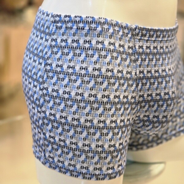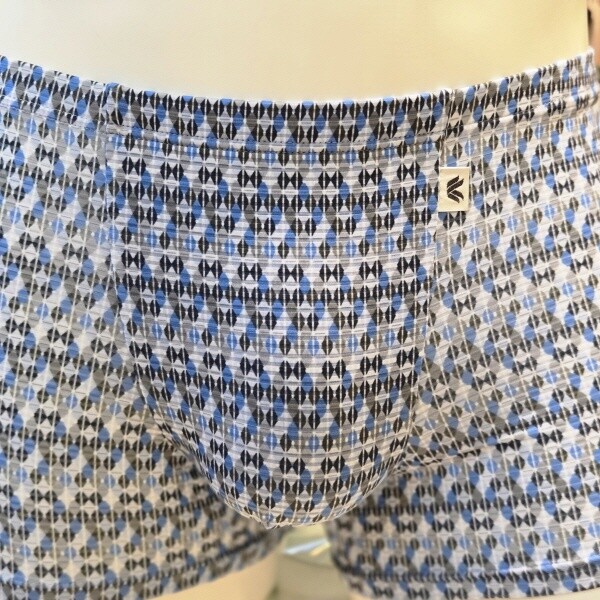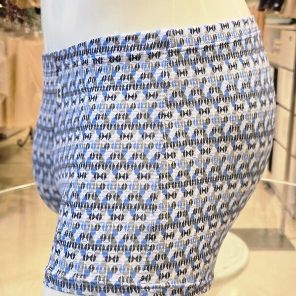 기하학 나염을 모티브로 한 에어로쿨 메쉬 변화직 소재의 드로즈로 흡습속건 기능을 가지고 있어 쾌적하게 착용 가능한 제품?
