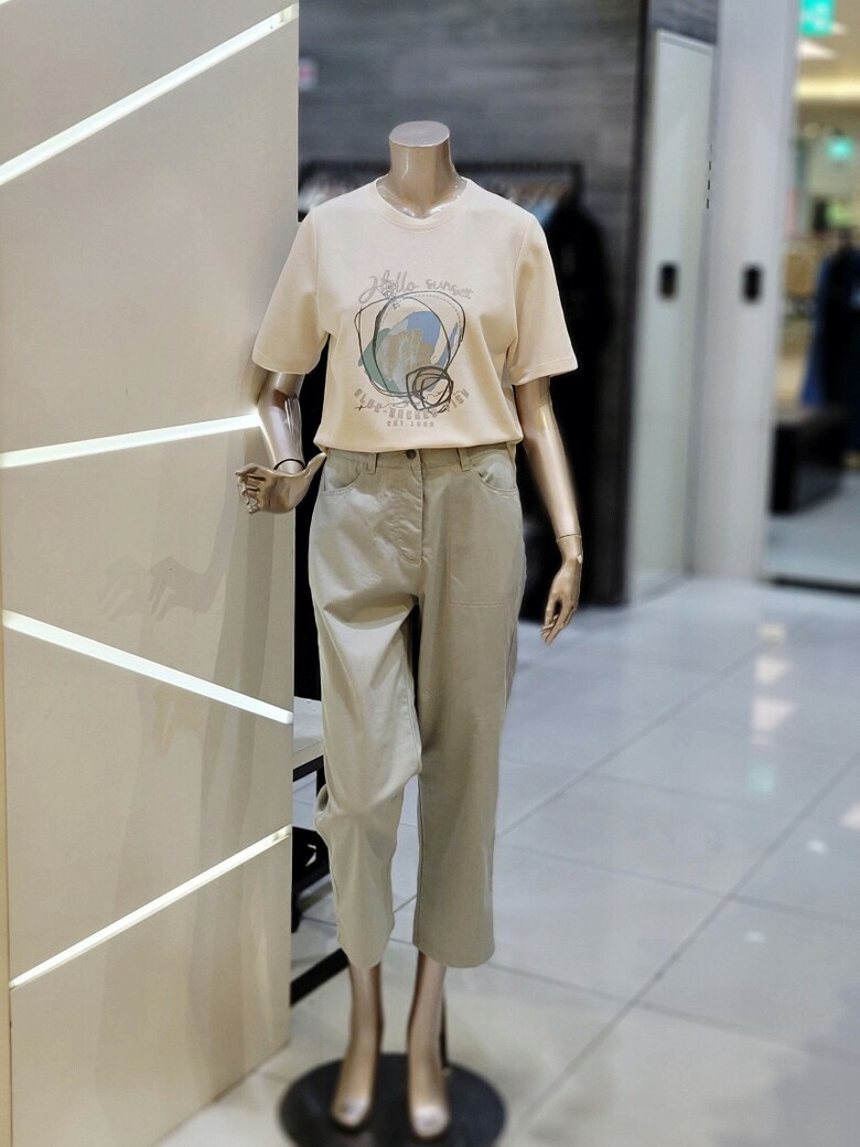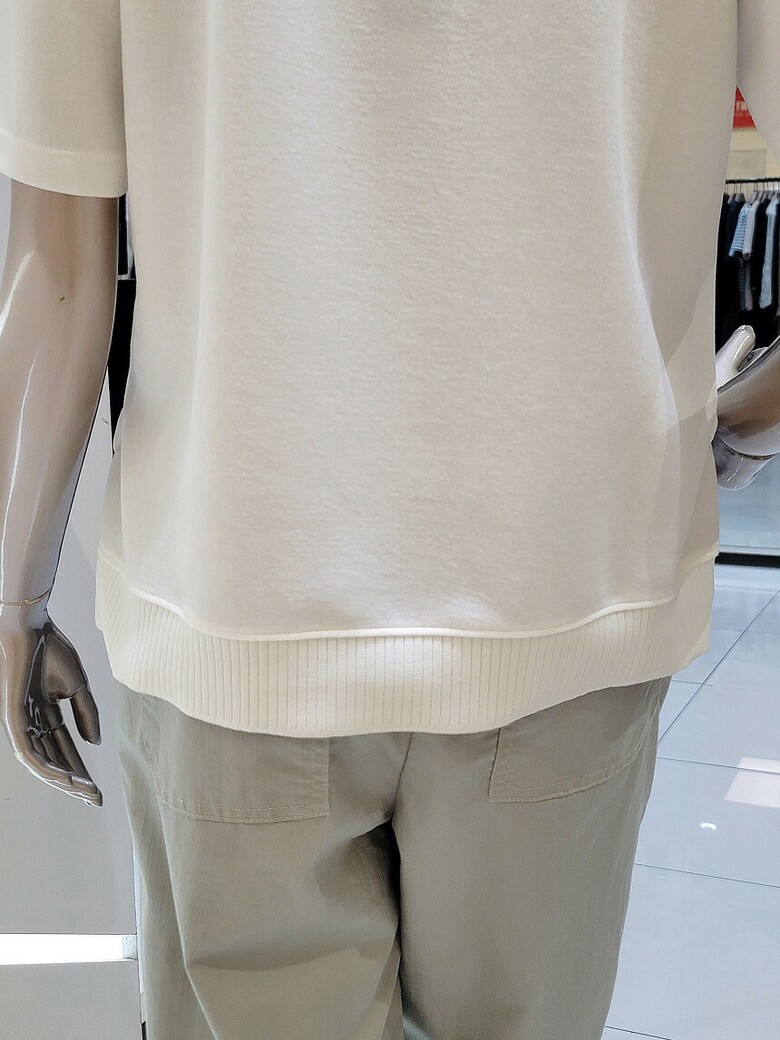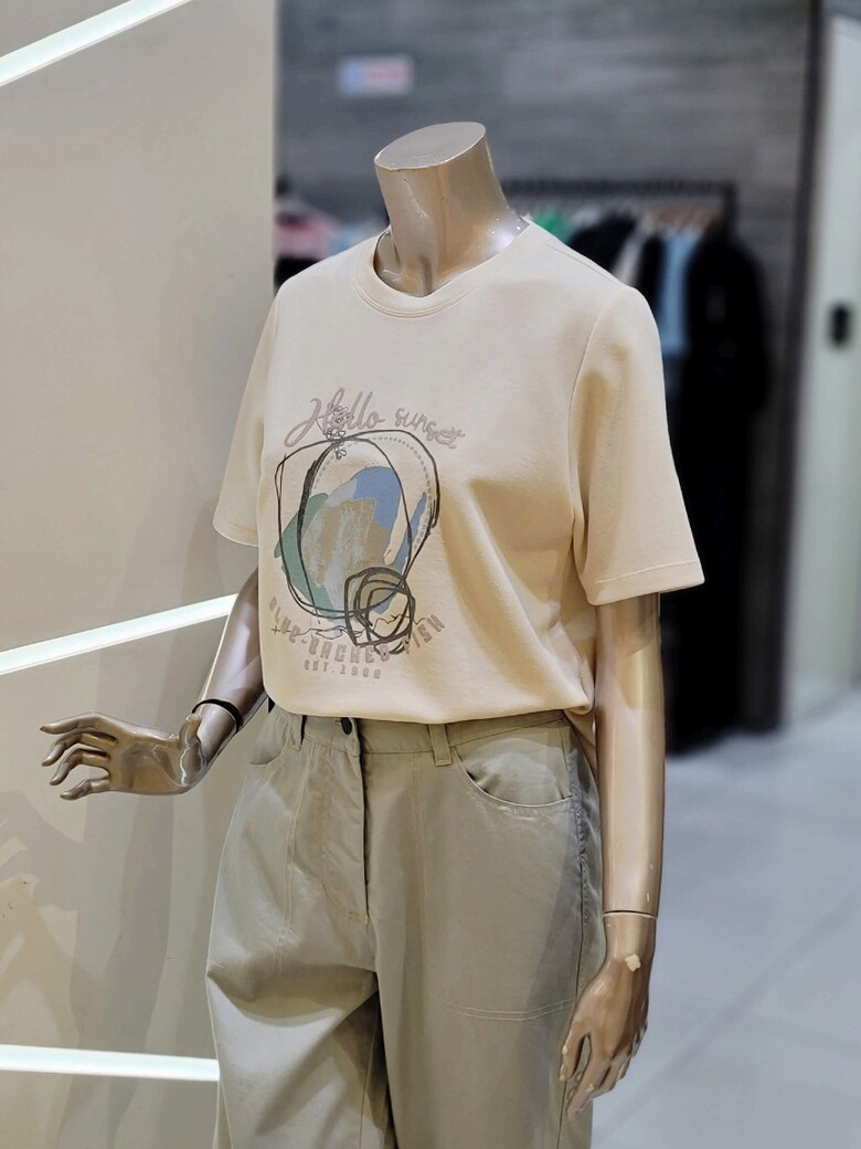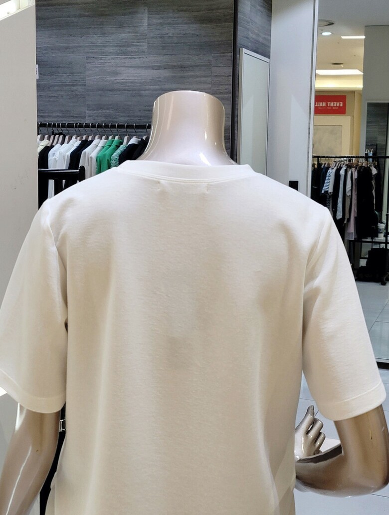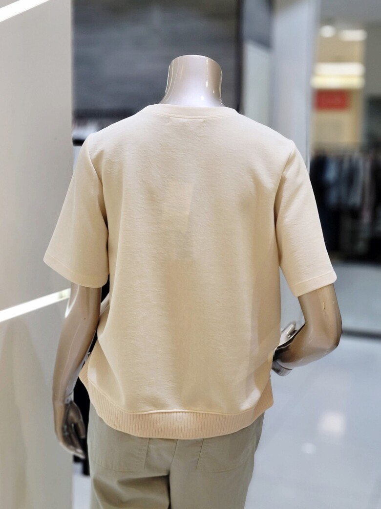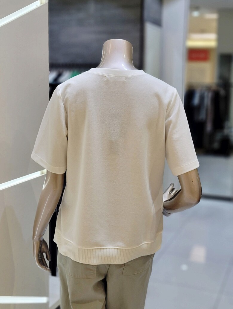 베이직한 실루엣의 라운드넥 디자인에 하프 슬리브로
