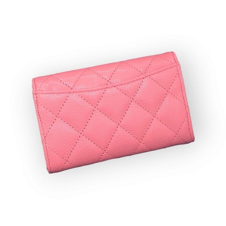 [명품] 샤넬 여성 클래식 똑딱이 카드지갑 캐비어 코랄 핑크 금장 클똑 AP0214