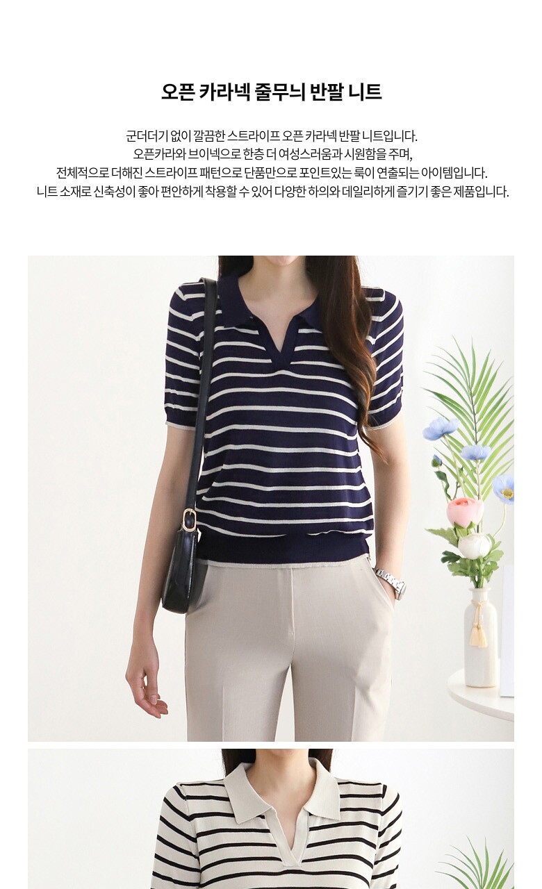 오픈 카라넥 줄무늬 반팔 니트_PM2505KN603B