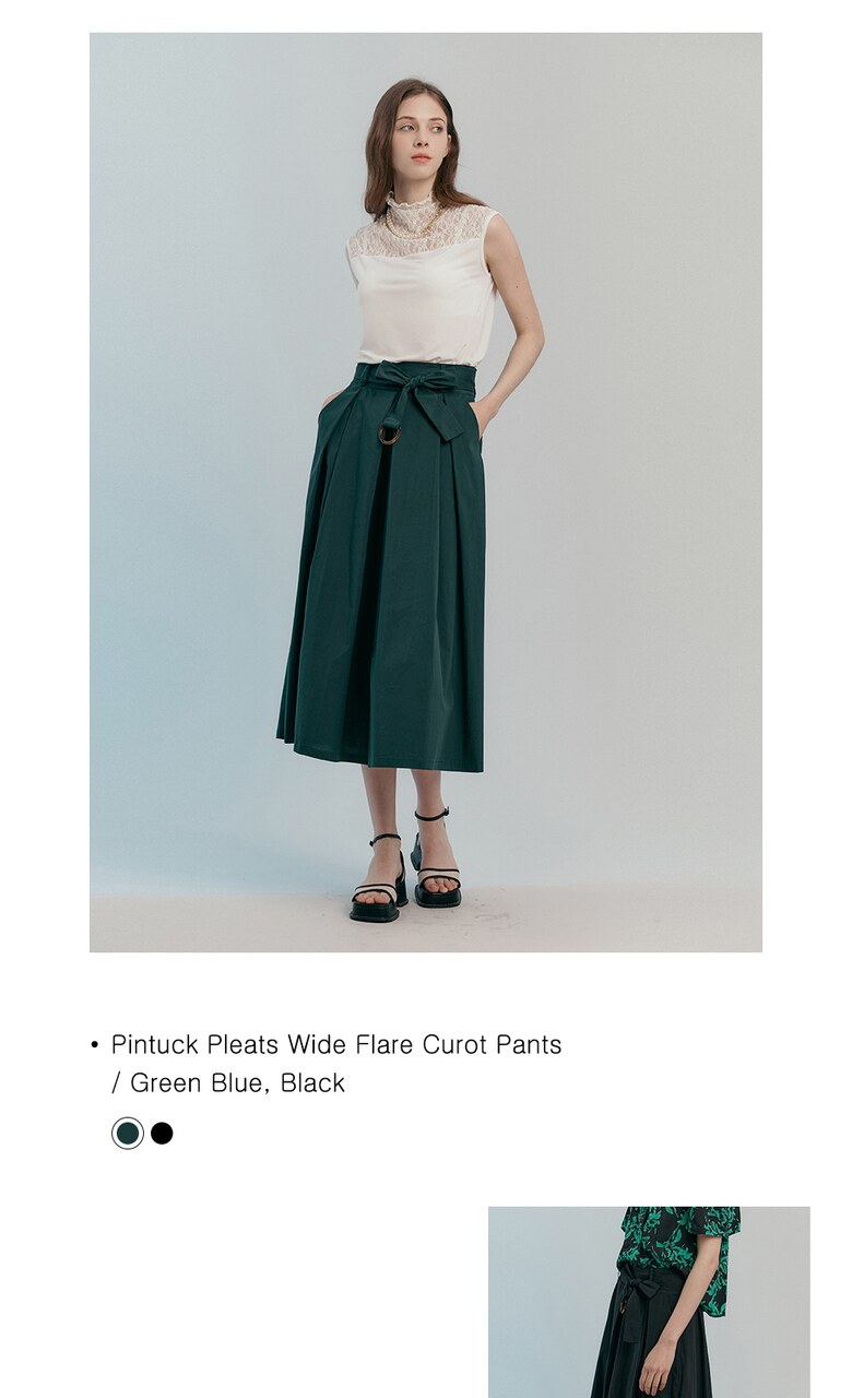 핀턱 플리츠 와이드 플레어 큐롯 팬츠