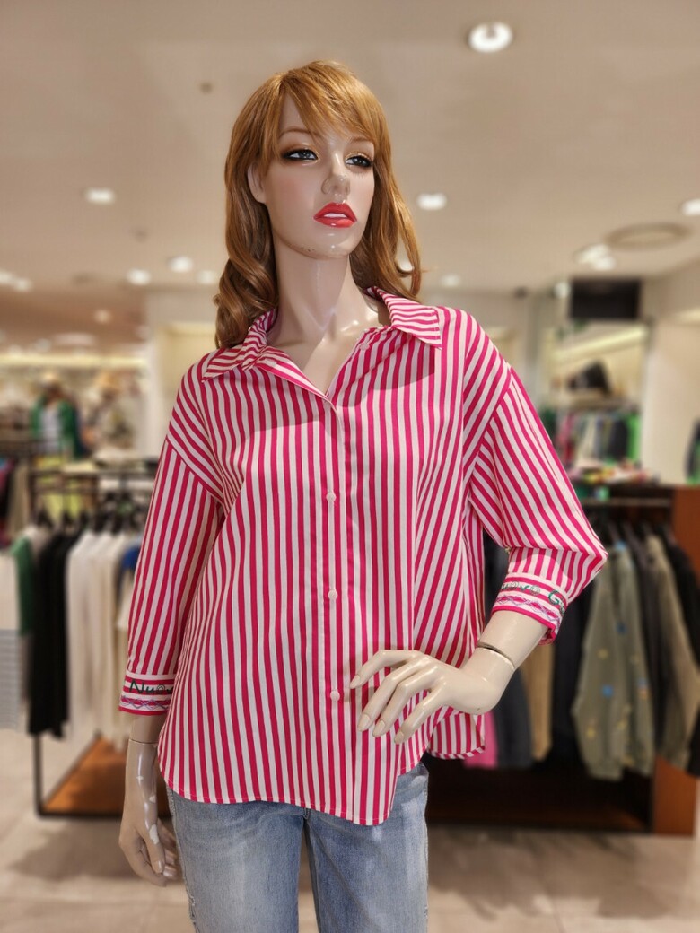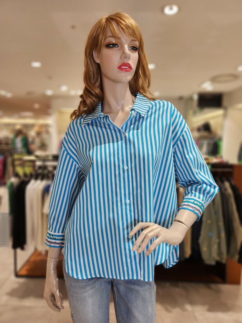 베네통 웨이브 스트라이프 블라우스 BABLA3531