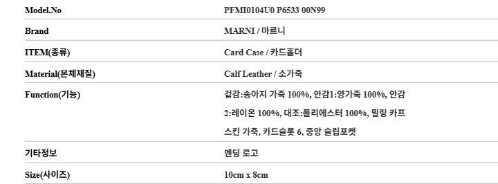 | 4. 제조사 | 마르니/MACHO-병행수입 |