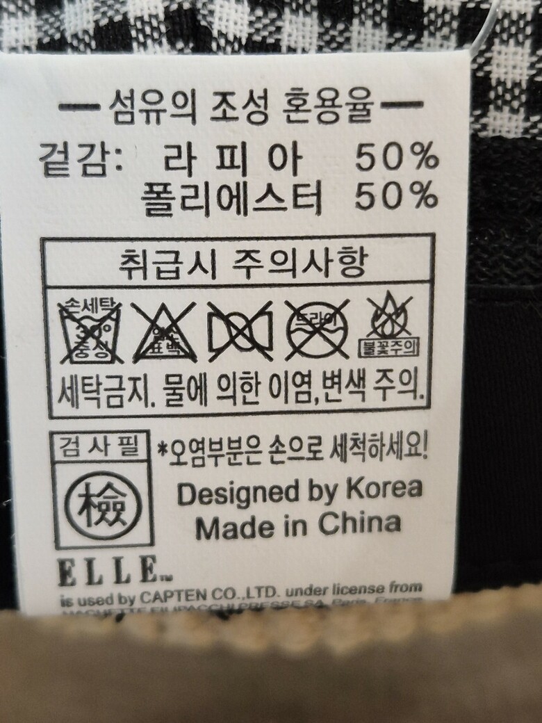 | 2. 소재 | 겉감:라피아 50%, 폴리에스테르 50% |