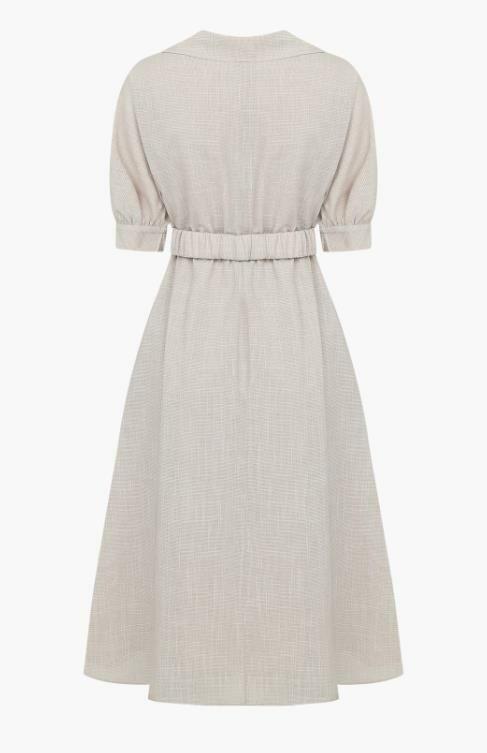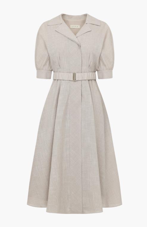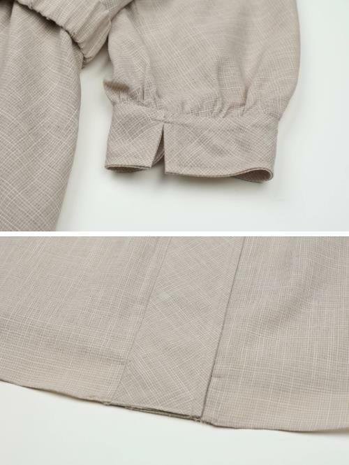 퍼프 소매와 A라인 스커트로 우아한 실루엣이 연출됩니다.
