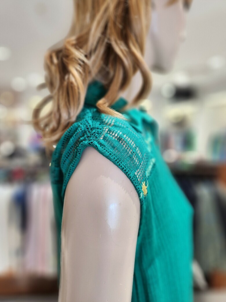 어깨선에는 펀칭 니트를 베섹처리하여 가벼워보이며