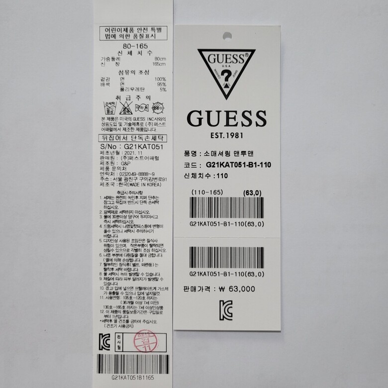 * 혼용율: 겉감 - 면 100%|*| 배색 - 면 95%|*| 폴리우레탄 5%