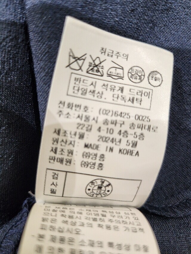 6. 세탁방법 및 취급시 주의사항 | 상품상세참조 |