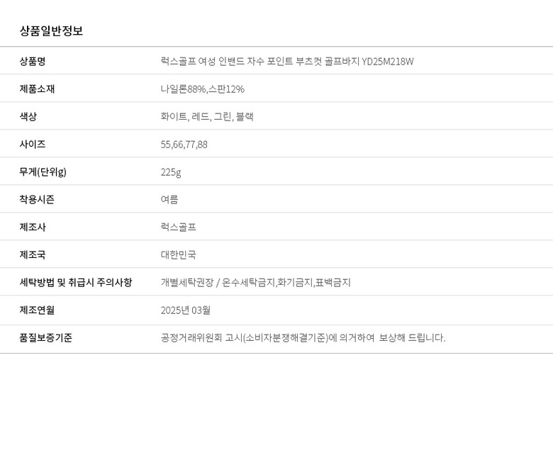 | 1. 제품 소재 (섬유의 조성 또는 혼용률을 백분율로 표시, 기능성인 경우 성적서 또는 허가서) | 상세설명참고 |