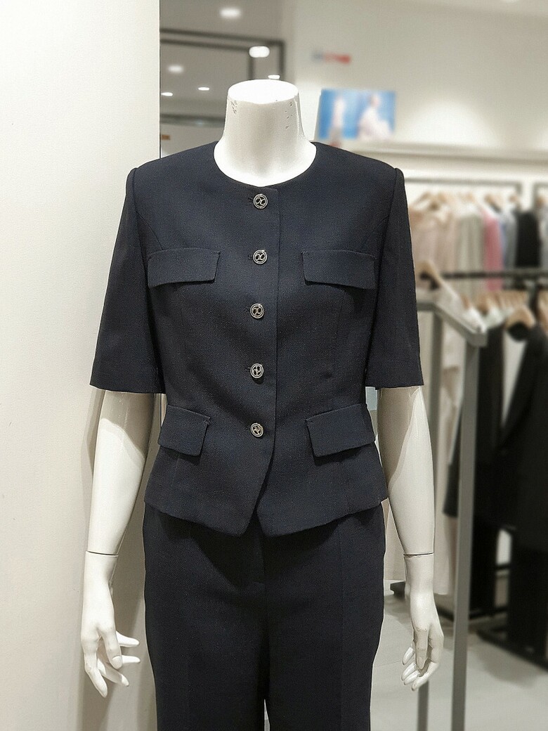 포멀한 무드가 느껴지는 크롭 기장의 KL 재킷입니다.