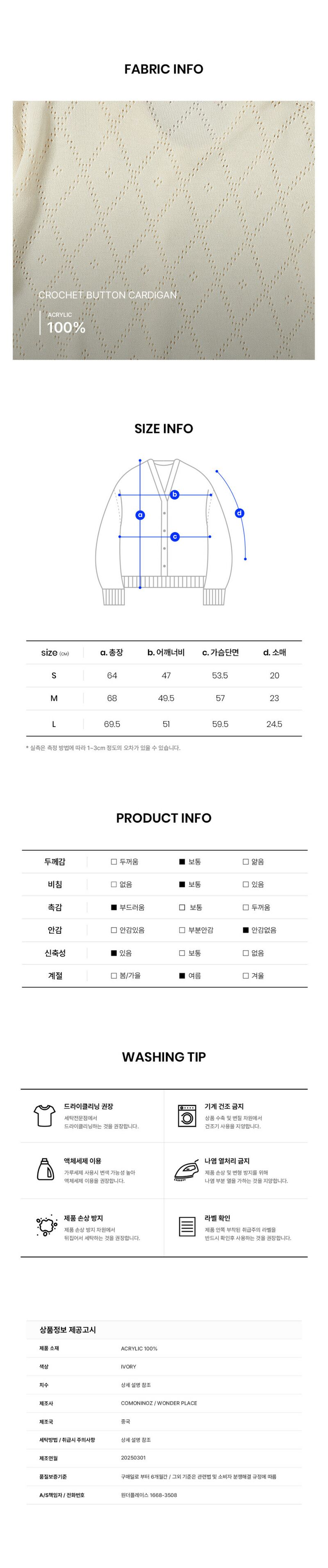 원더플레이스 꼬모니노즈 CROCHET BUTTON CARDIGAN (WN246TDSCZ01)