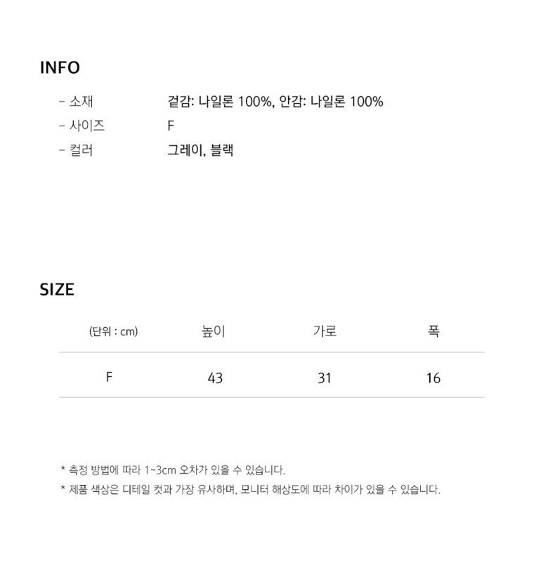 내구성이 뛰어나고 여유로운 수납공간으로 소지품 보관에 용이합니다.