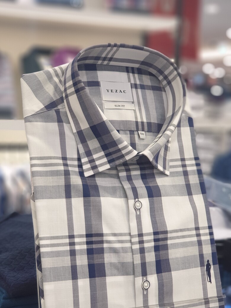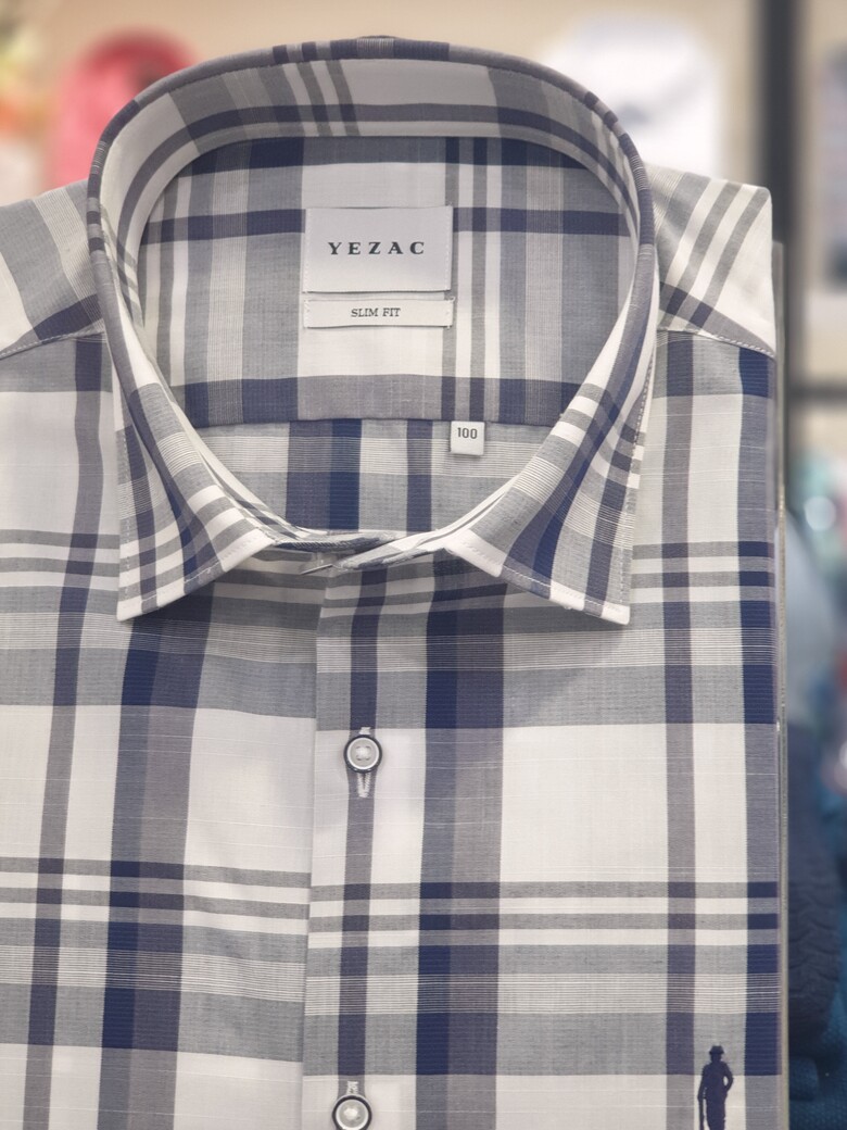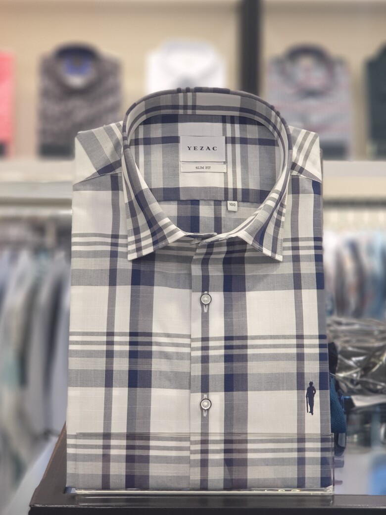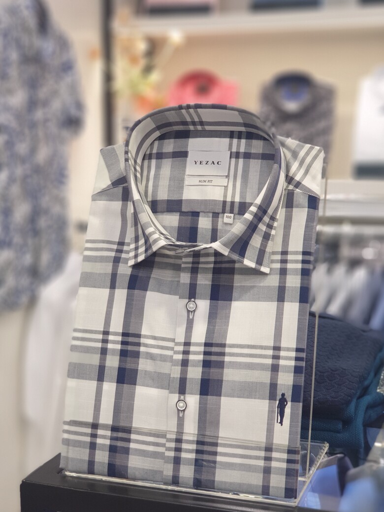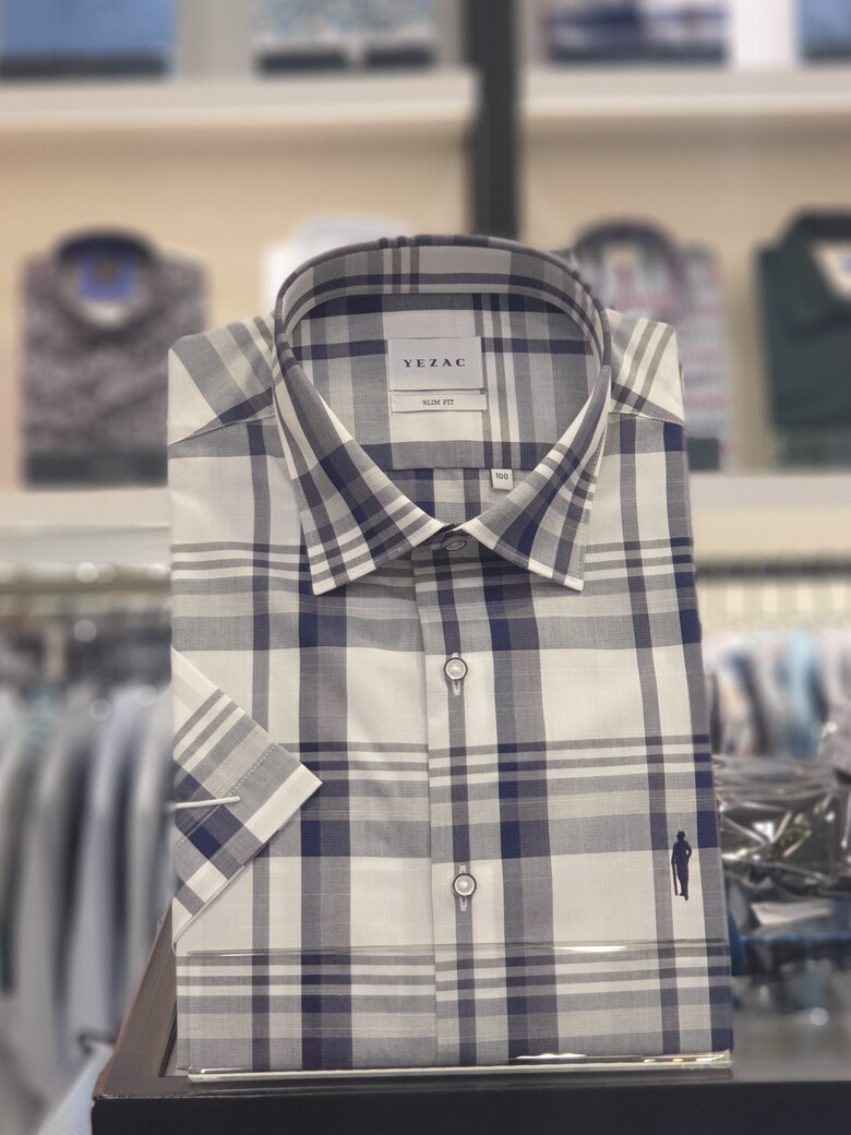 [예작셔츠] 반소매 면혼방 슬럽사 멀티체크 슬림핏 셔츠 YJ1MBS435NY