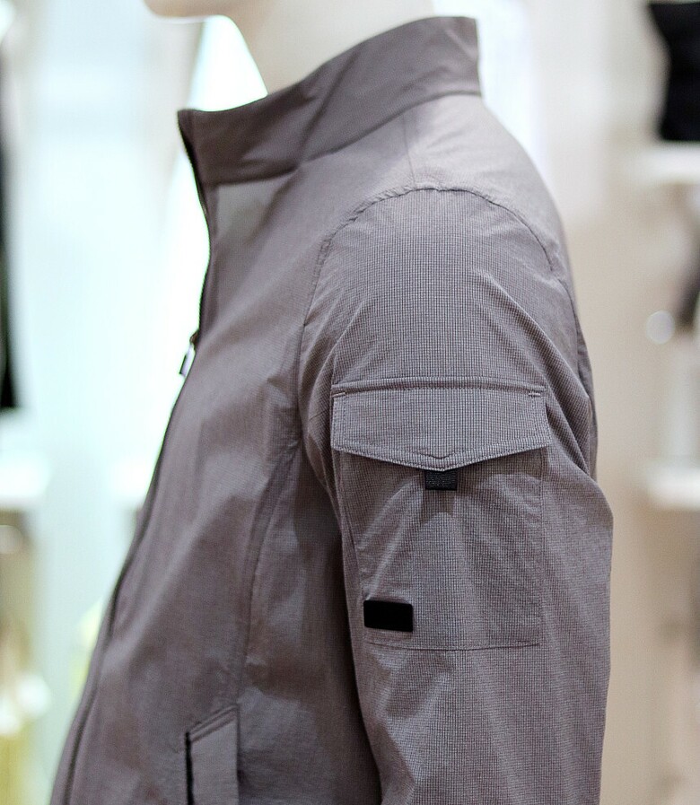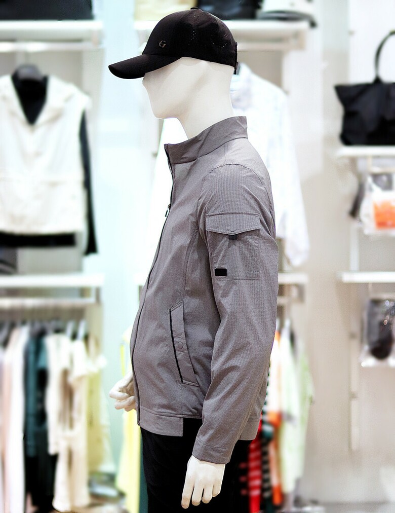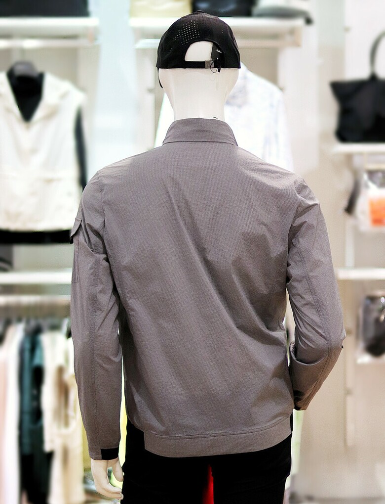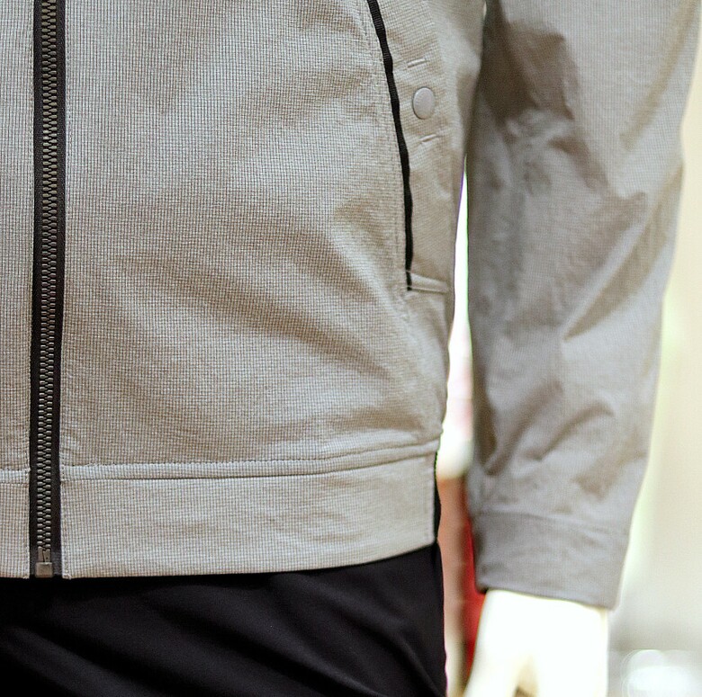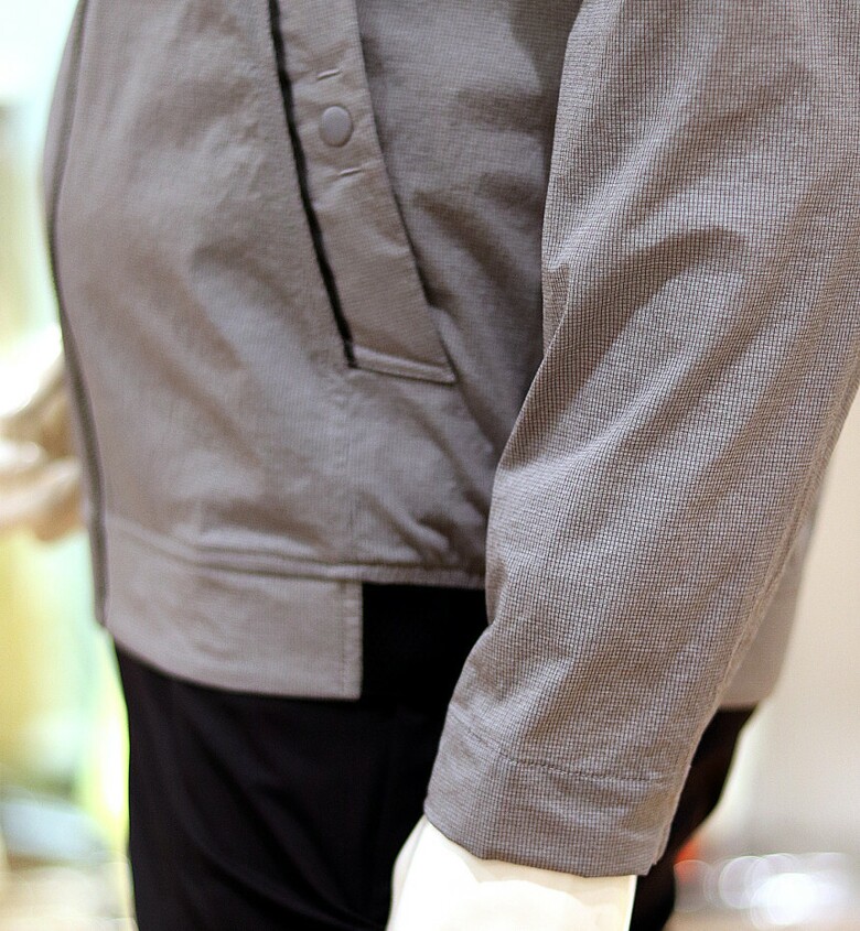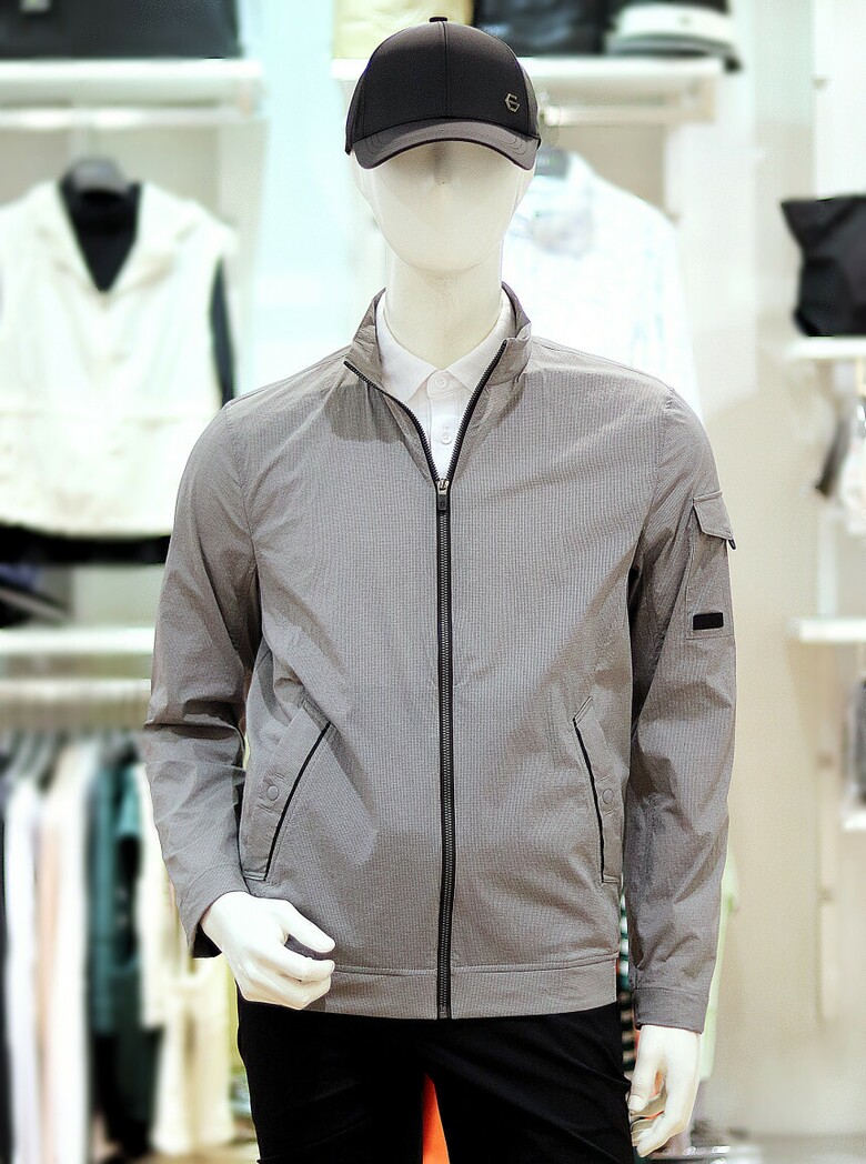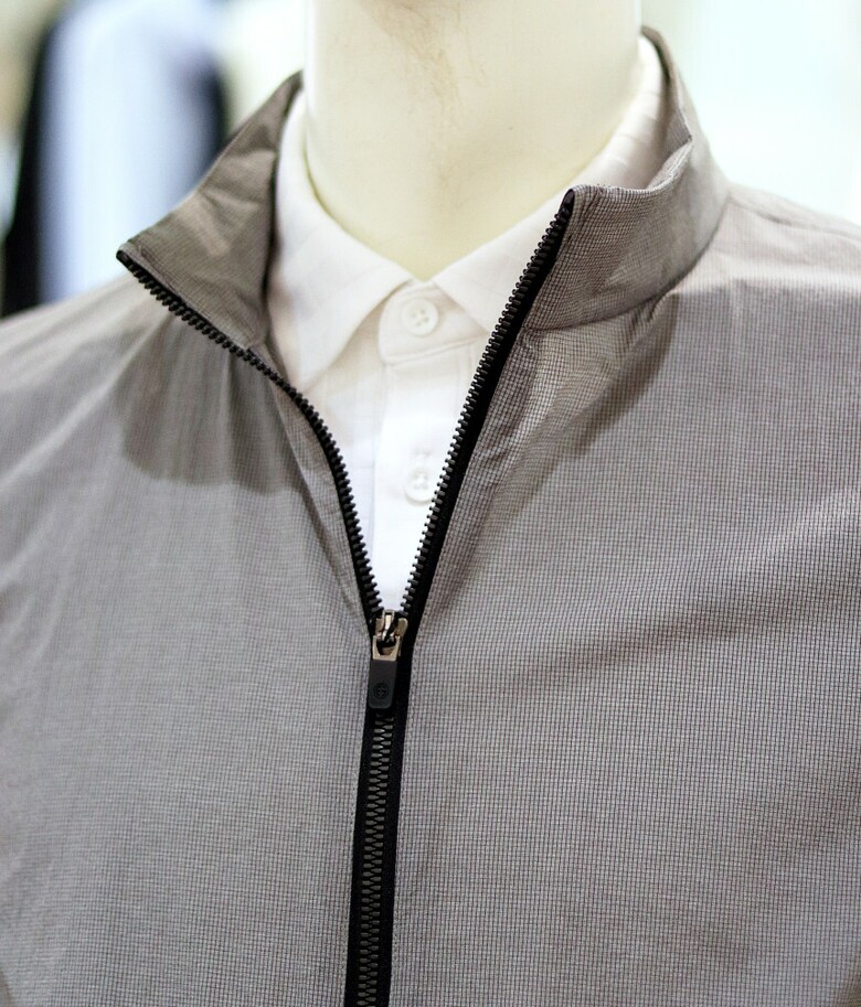 캐쥬얼 스타일의 잔체크 패턴 홑겹 썸머 바람막이 점퍼입니다