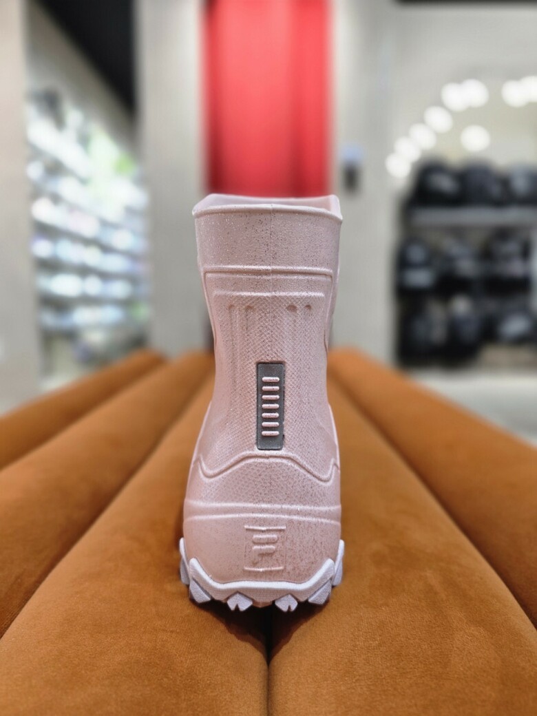 - 휠라 키즈의 시그니처 모델인 오크먼트의 아웃솔을 적용하고 완전 방수가 가능한 경량 IP 소재를 적용해 미끄러짐 걱정 없이 신을 수 있도록 디자인