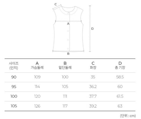 사이즈 단위는 cm이며,재는 위치에 따라 1~3cm사이즈 오차가