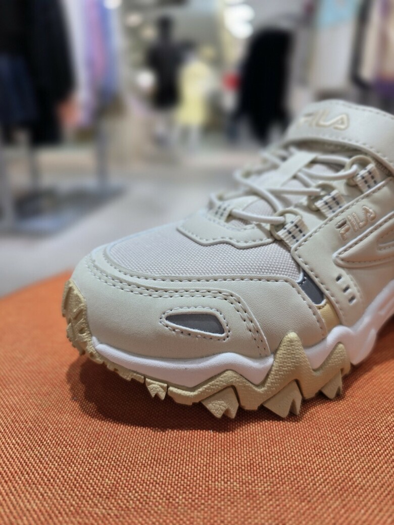 - 트레킹화를 연상시키는 과감한 아웃솔과 복잡한 패턴의 갑피 디자인의 조화가 돋보이는 제품