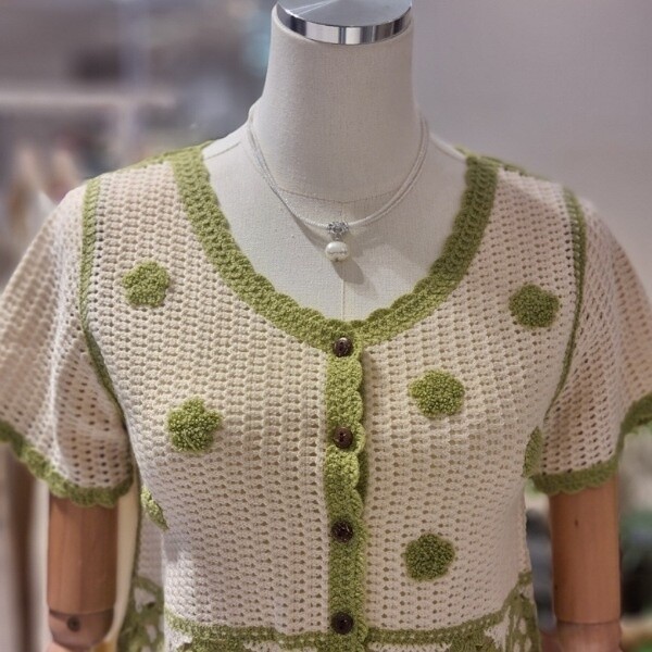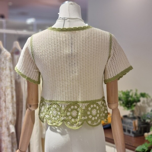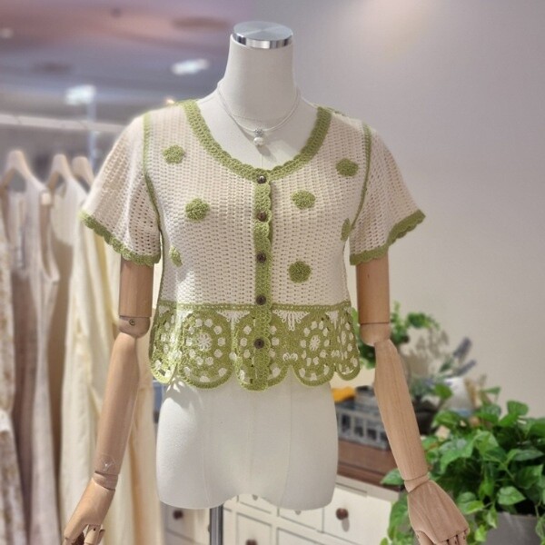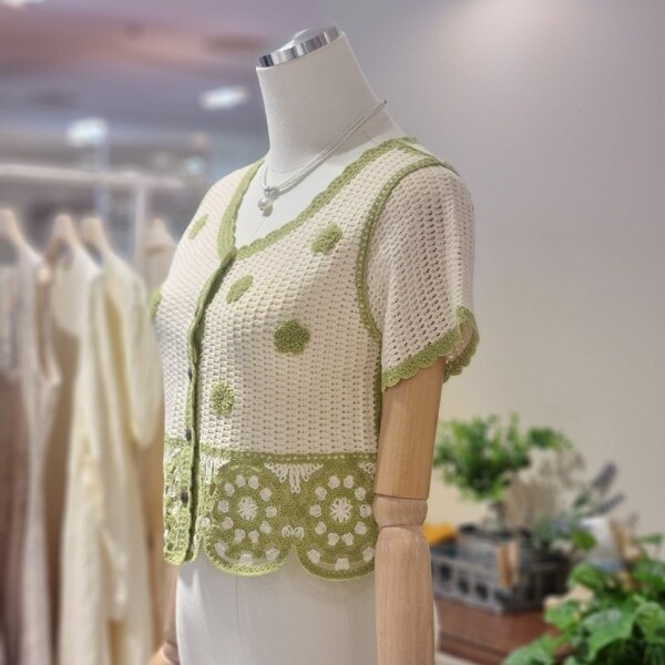 손뜨개 스타일크롭형 가디건/사랑스러운 디자인/다양한 코디