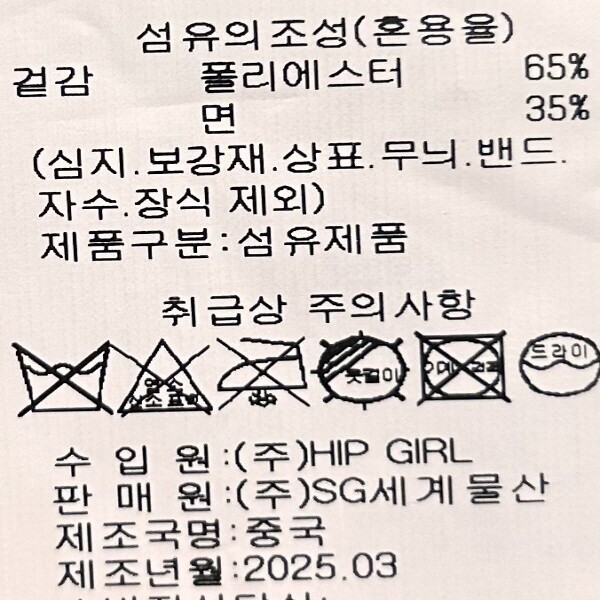 제조자 : (주)HIP GIRL