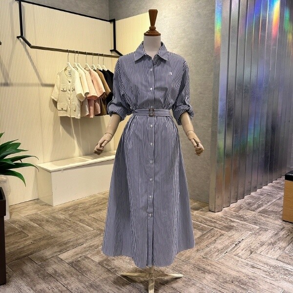 2025년 S/S 신상 롤업 소매 스트라이프 롱 원피스?입니다.