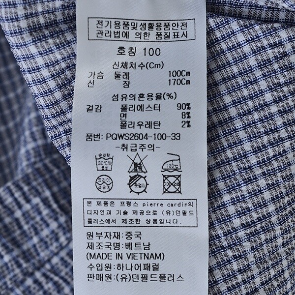 제품소재 : 폴리에스터 90%, 면 8%, 폴리우레탄 2%