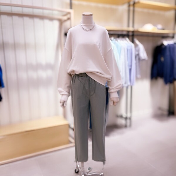 또한 밑단에도 스트링이 되어 있어서 요즘 유행하는 조거 팬츠의 느낌으로도 입을 수 있고,기본 일자 면 팬츠의 느낌으로도 착용 가능하답니다.