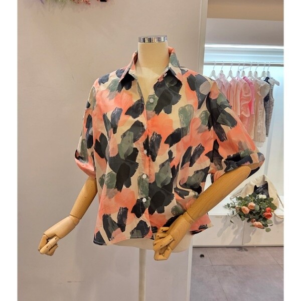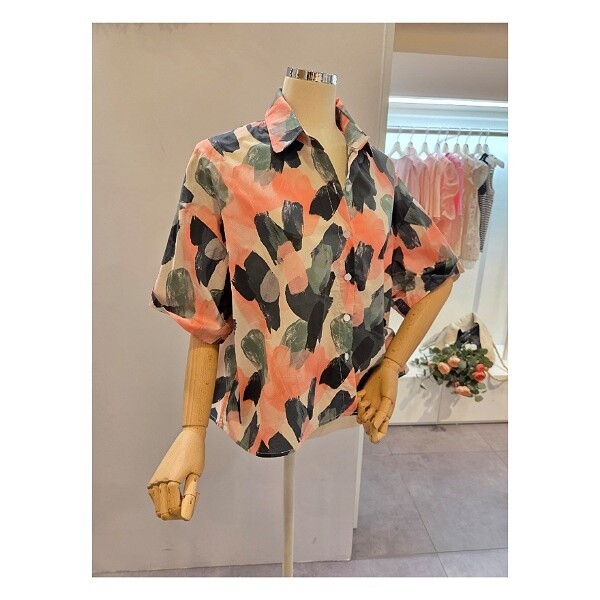 치수 : FREE /어깨너비 57cm 가슴단면 64cm 소매기장 21cm 총 기장 56cm