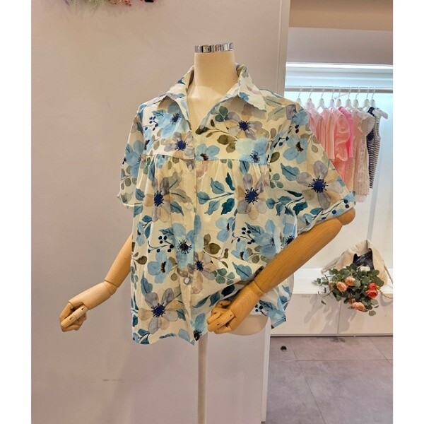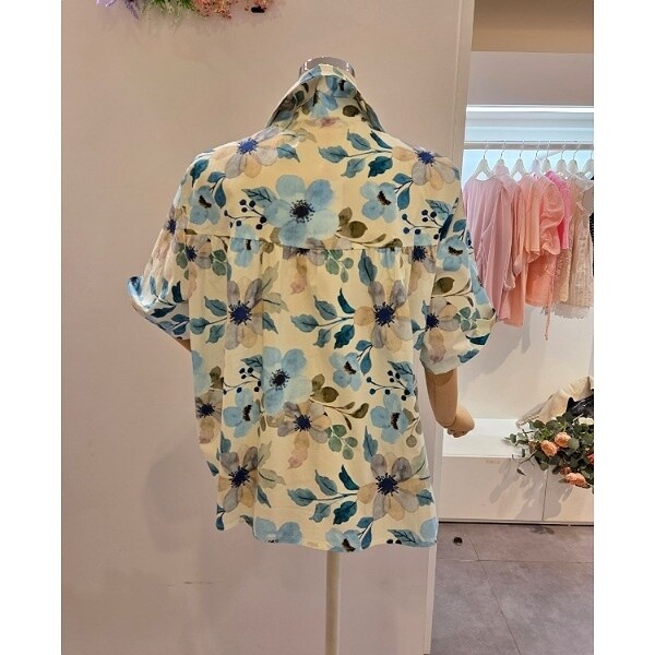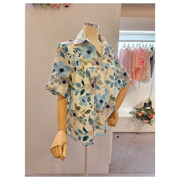 CP5WBL13_셔링 플라워 패턴 셔츠