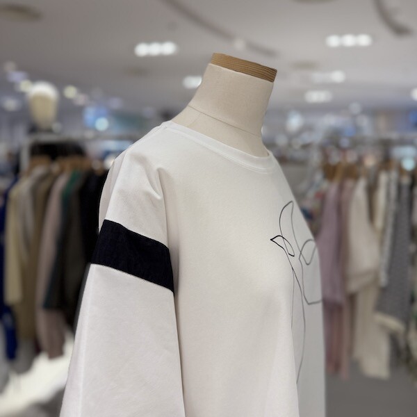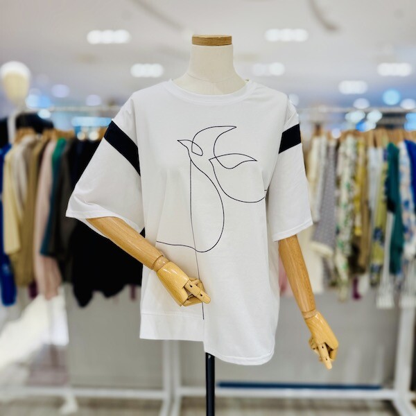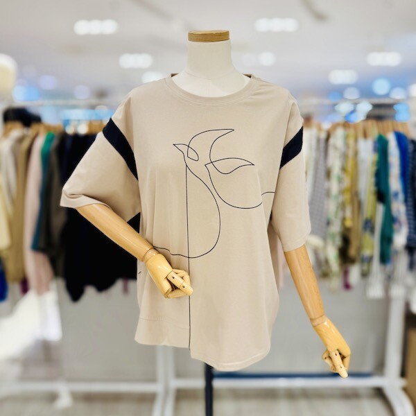 A25TS5244_소매 배색 버드라인 티셔츠