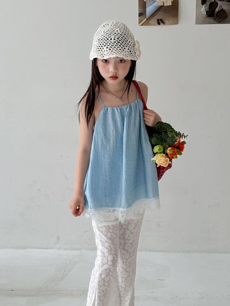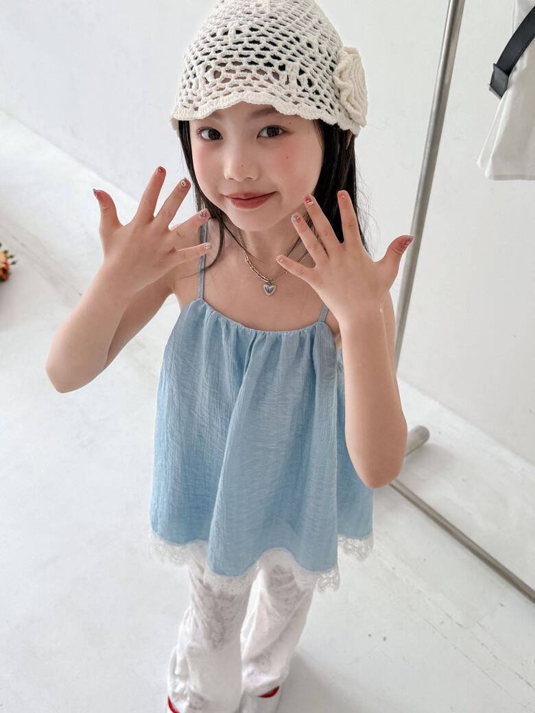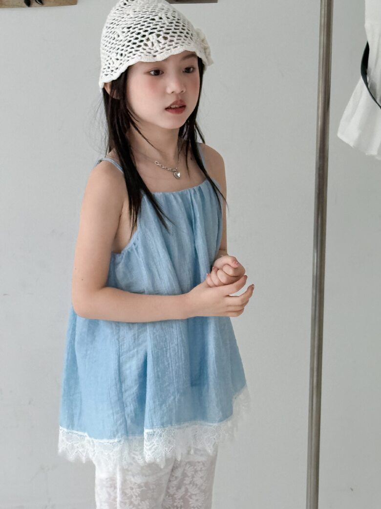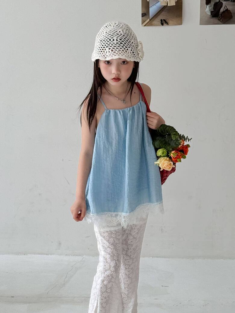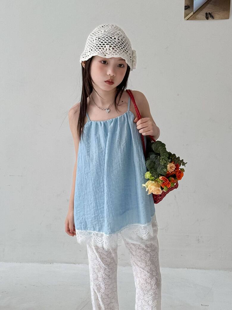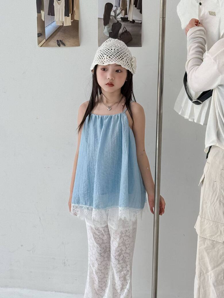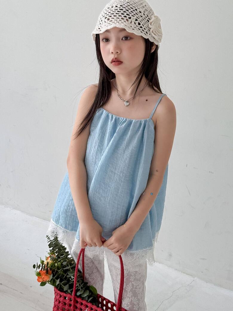 [예약발송] 배색 레이스 스트랩 블라우스 R14362