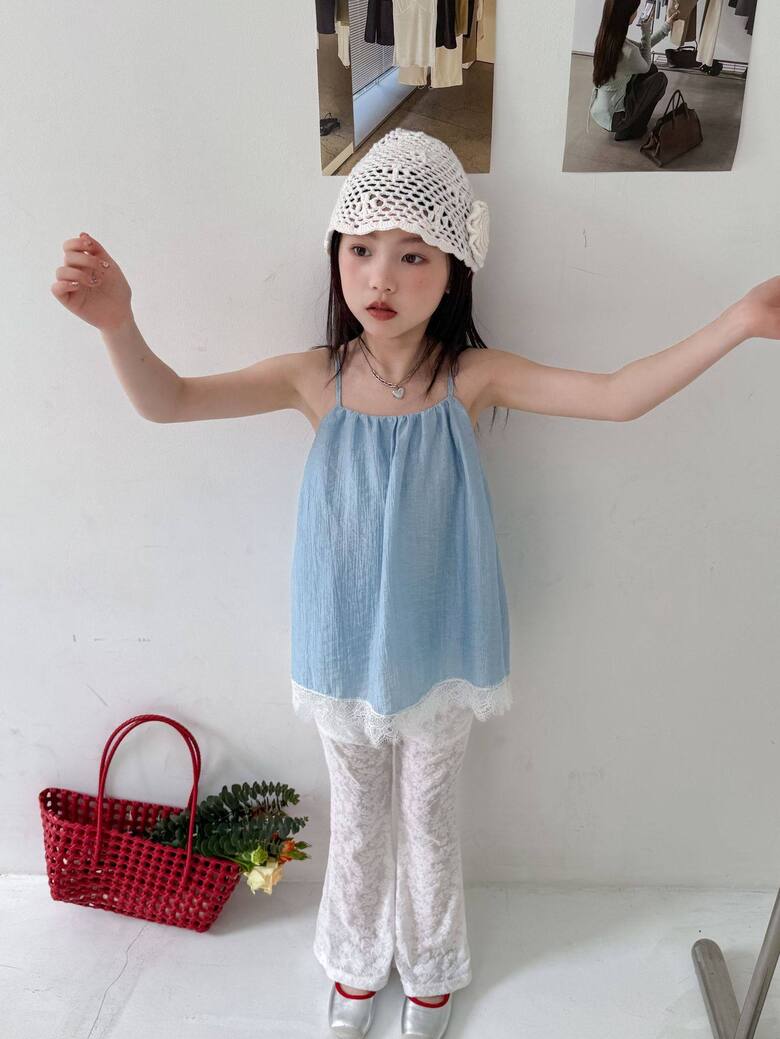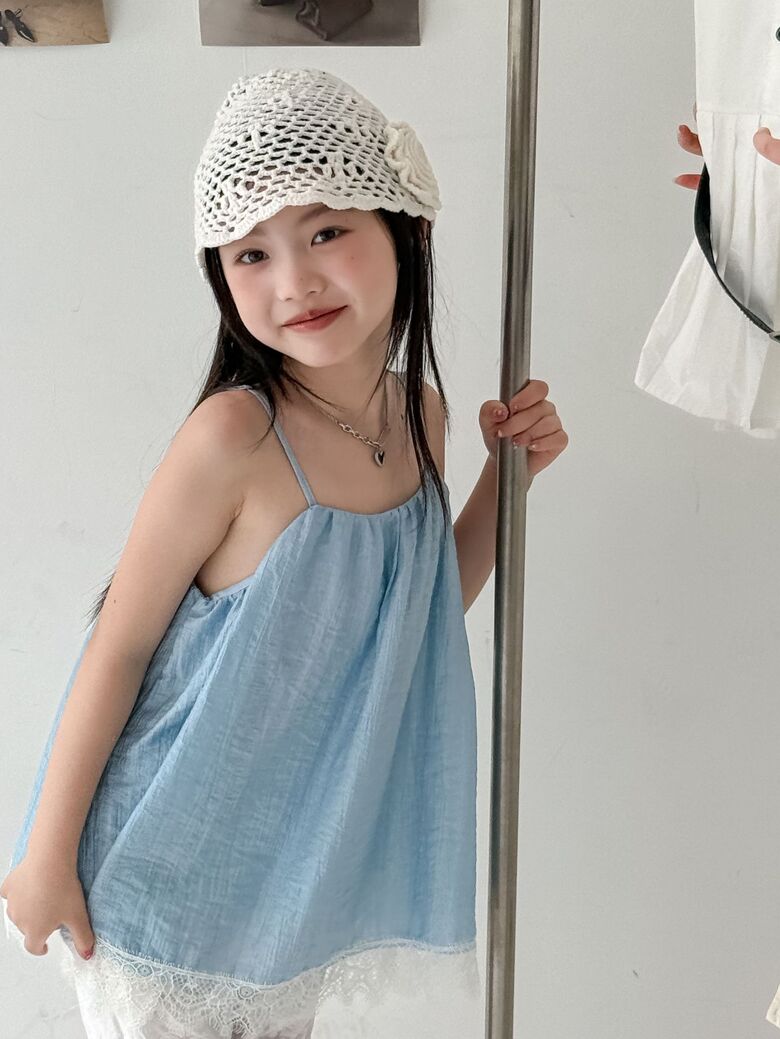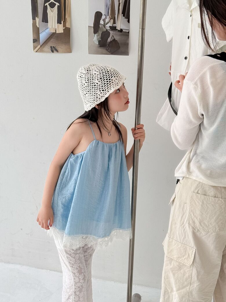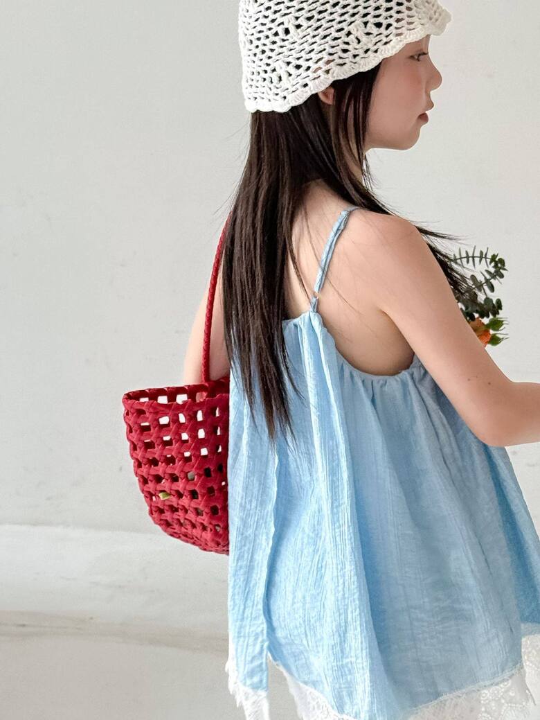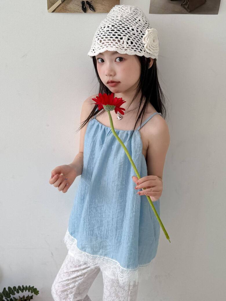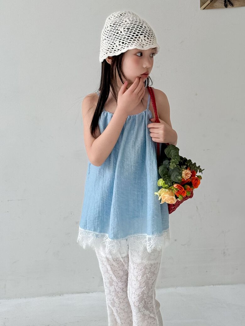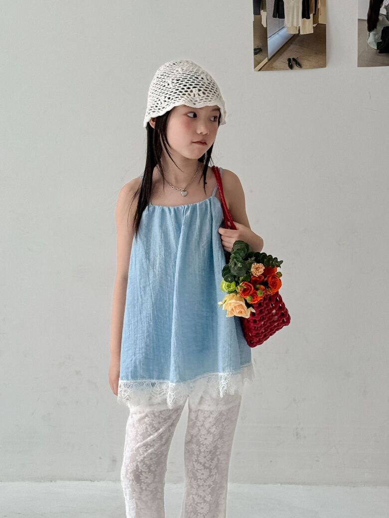 [예약발송] 배색 레이스 스트랩 블라우스 R14362
