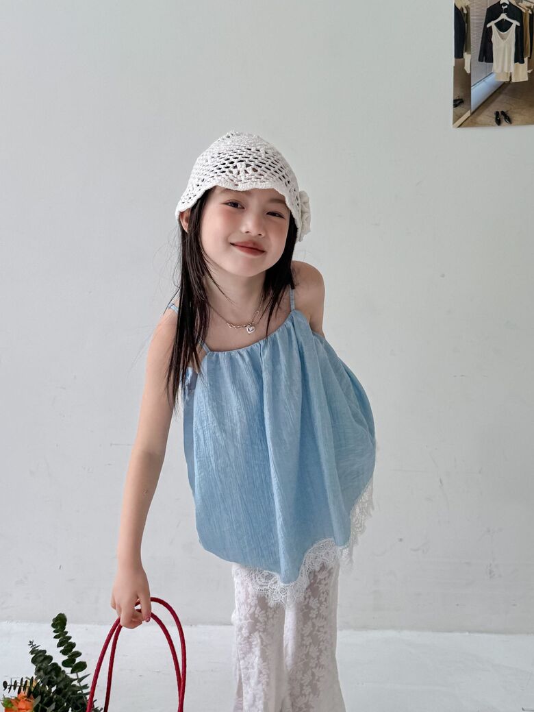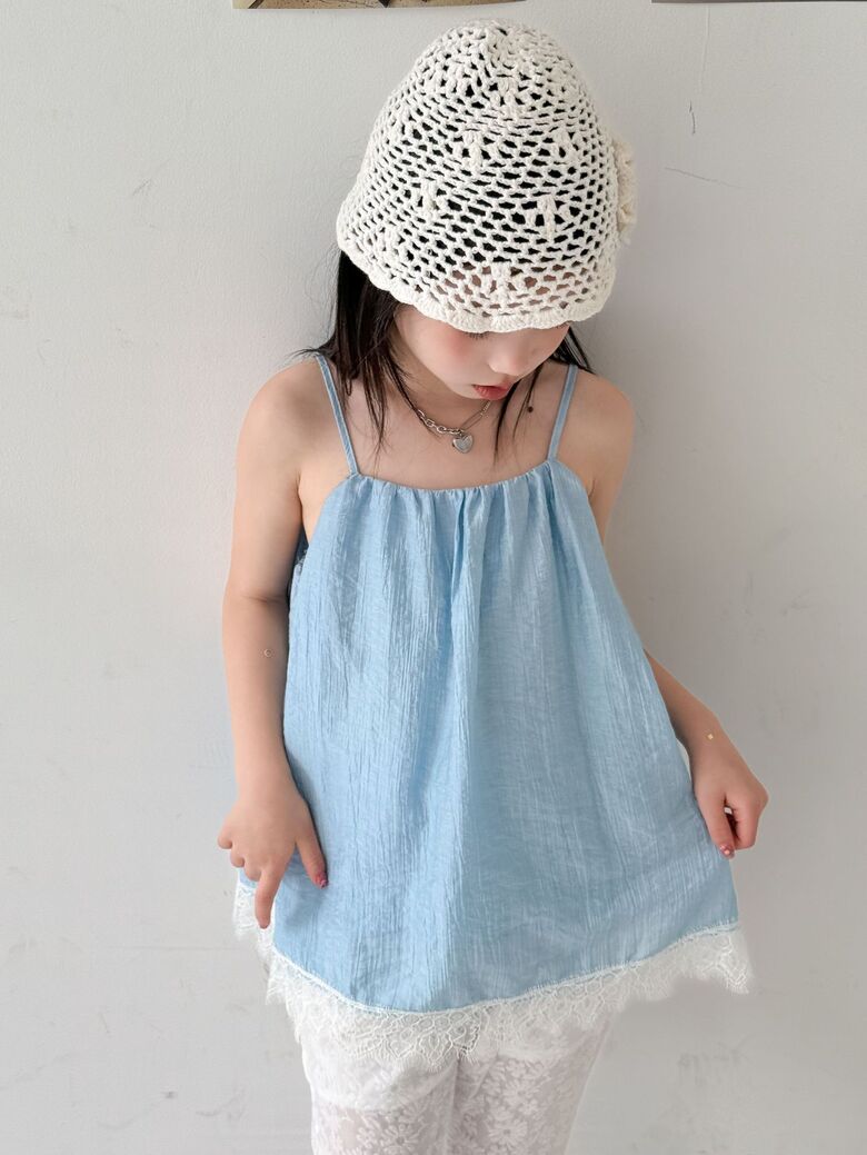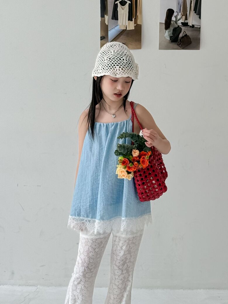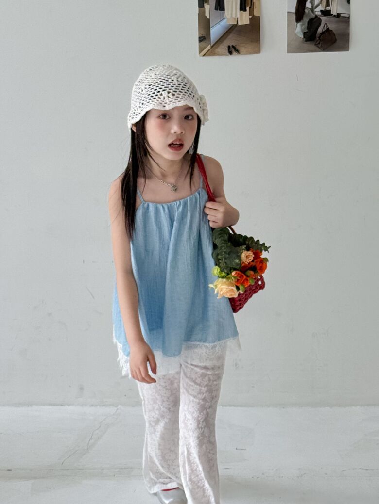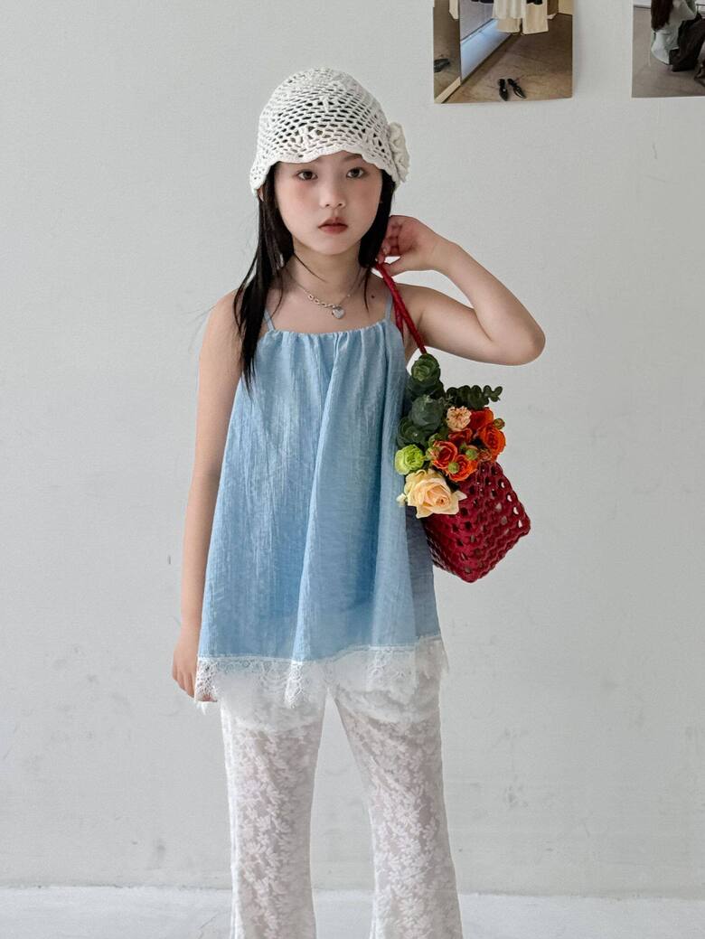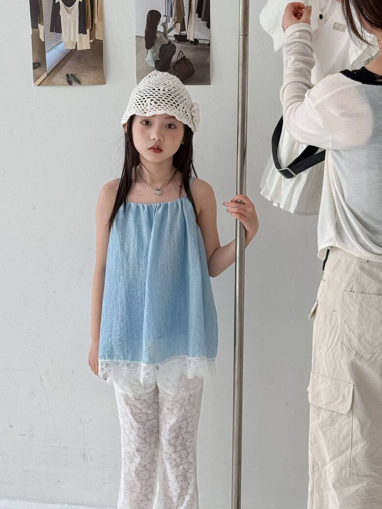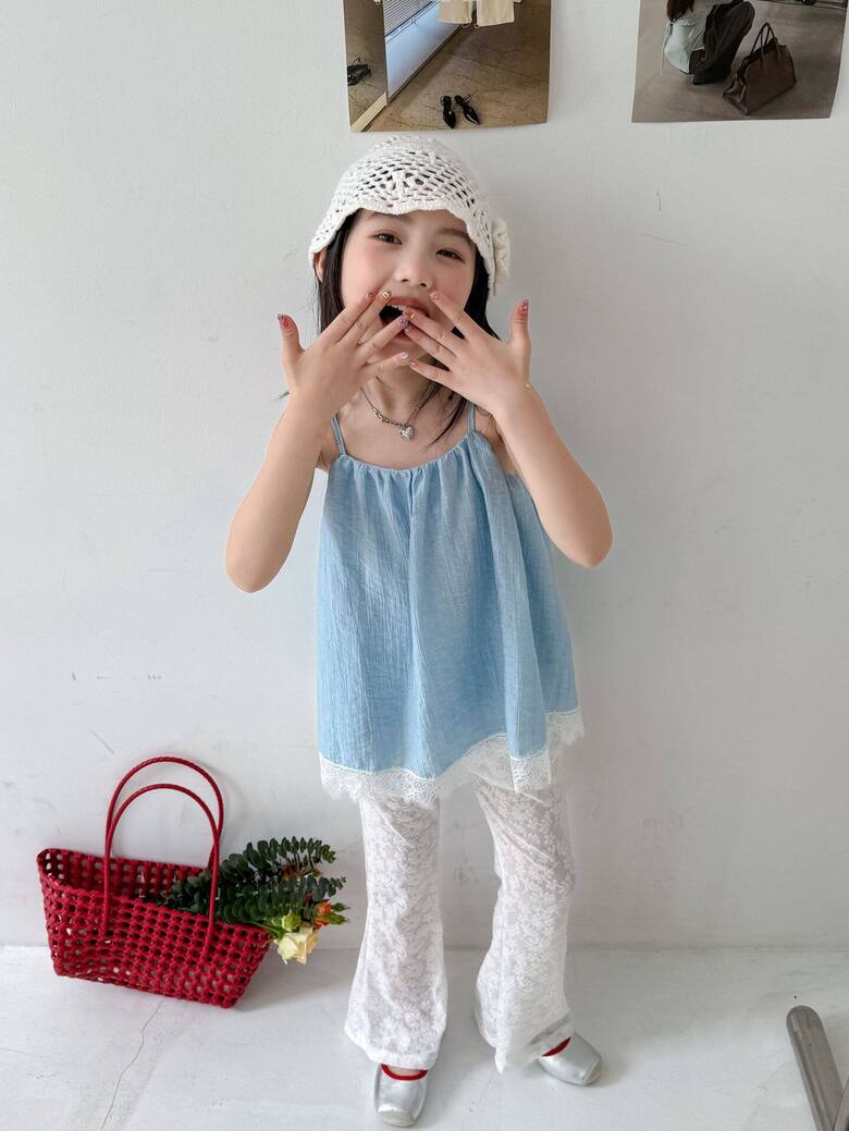 [예약발송] 배색 레이스 스트랩 블라우스 R14362
