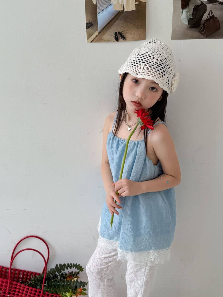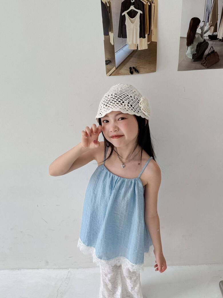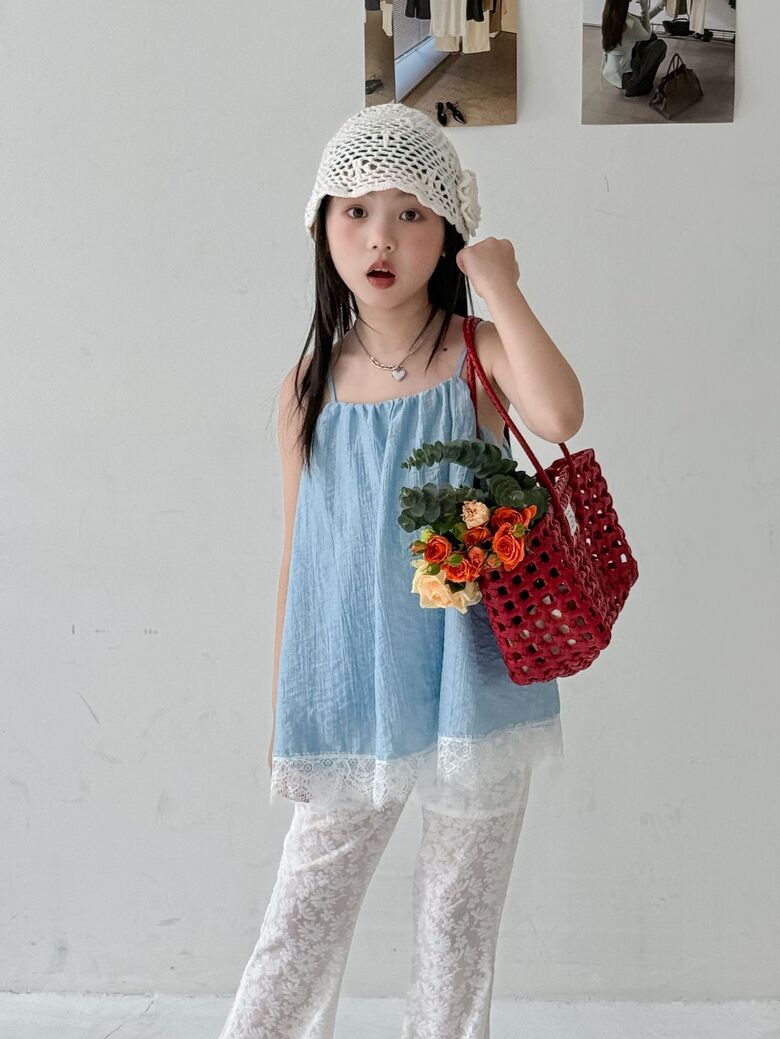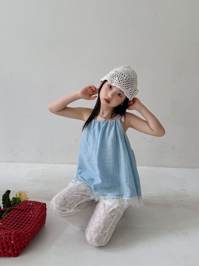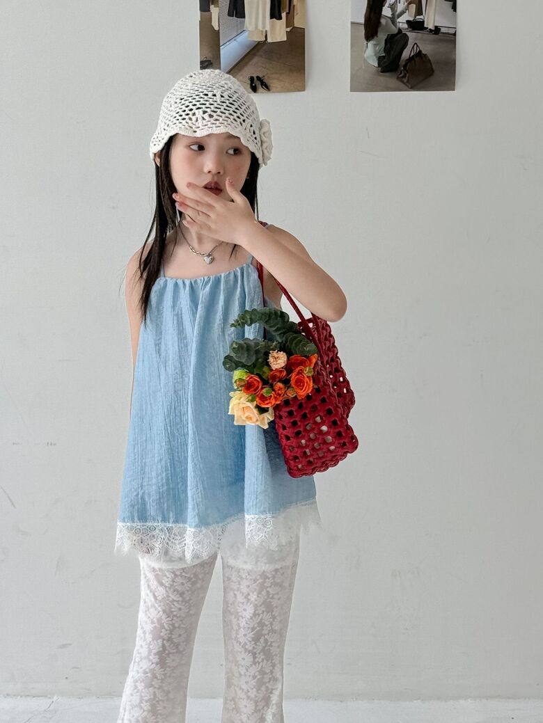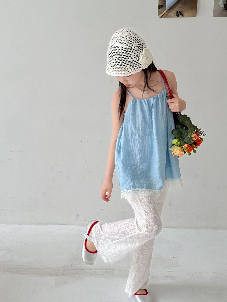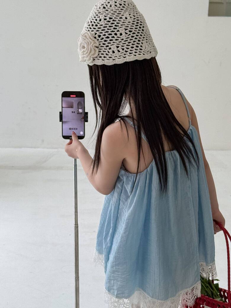 [예약발송] 배색 레이스 스트랩 블라우스 R14362