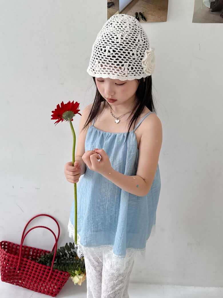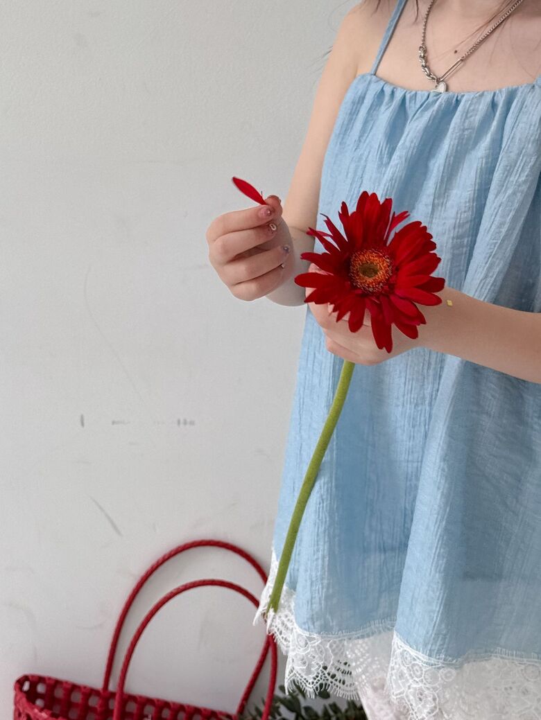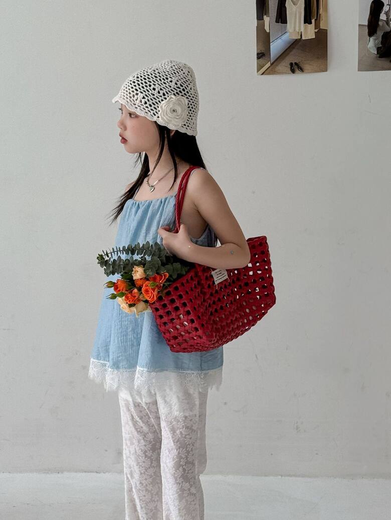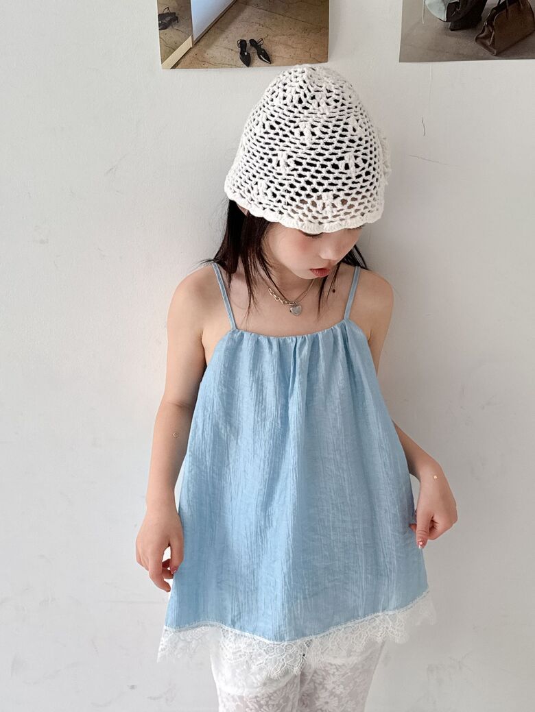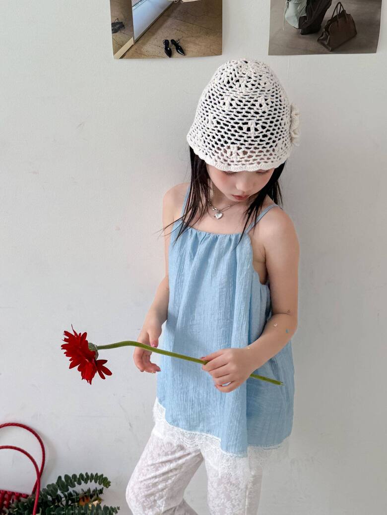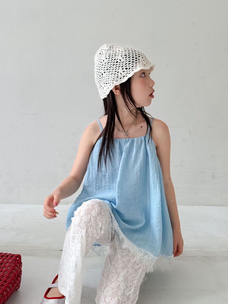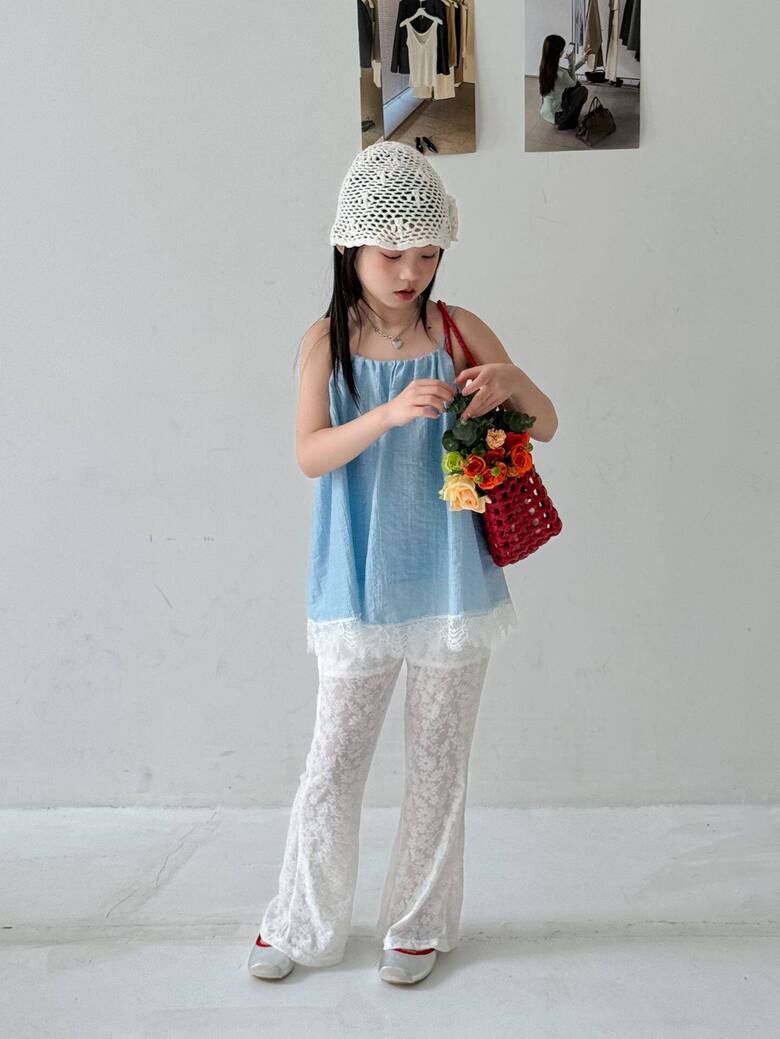 [예약발송] 배색 레이스 스트랩 블라우스 R14362